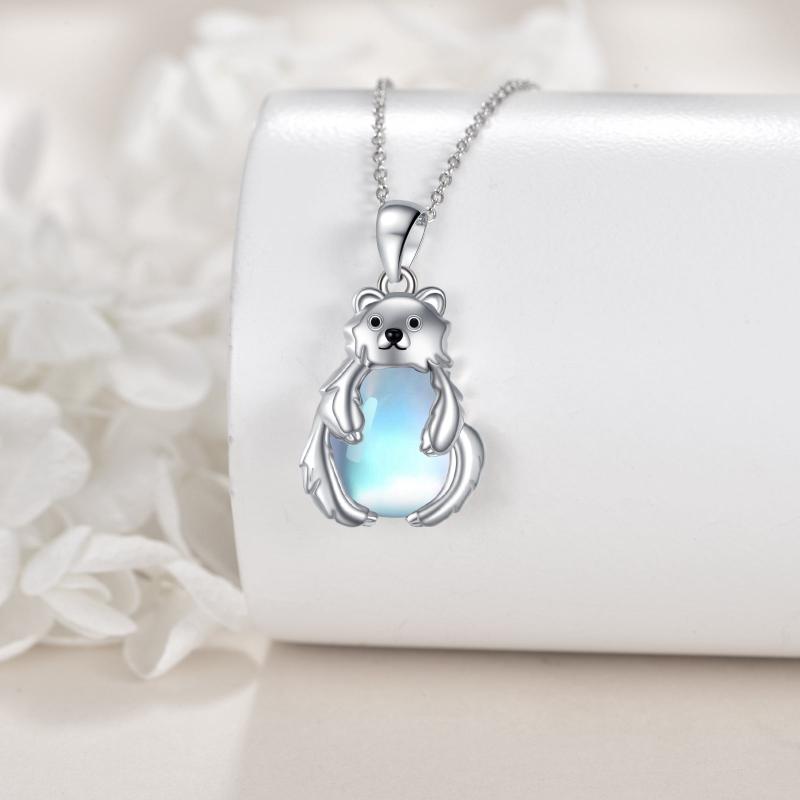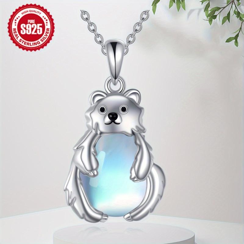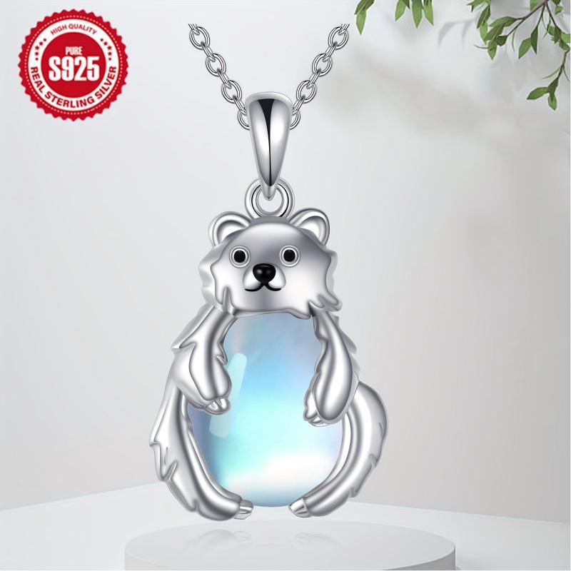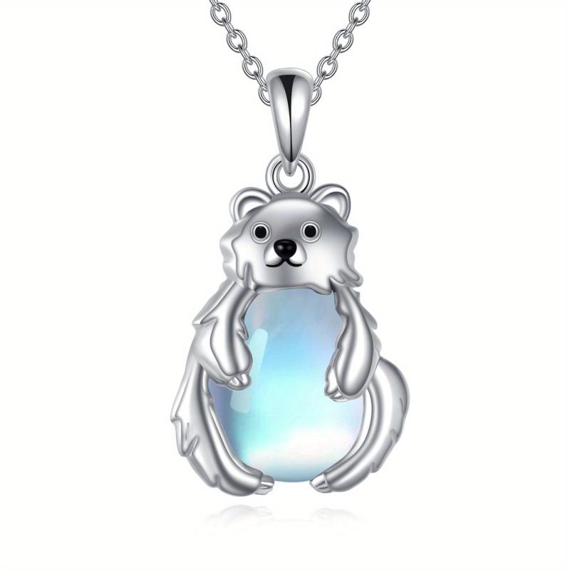 This stunning sterling silver necklace features a moonstone polar bear pendant, perfect for animal lovers and nature enthusiasts.