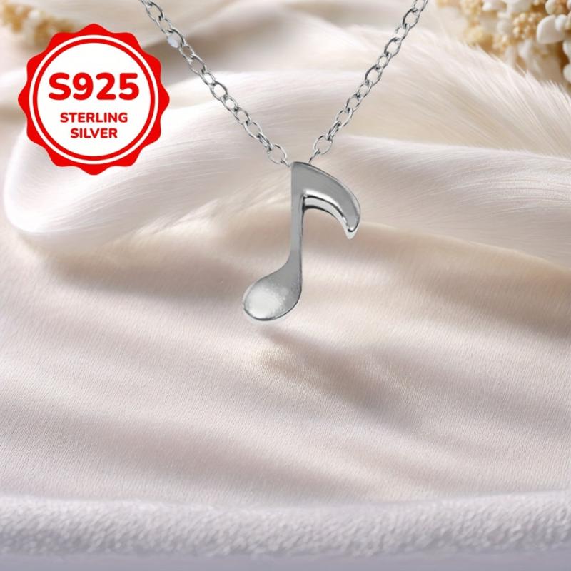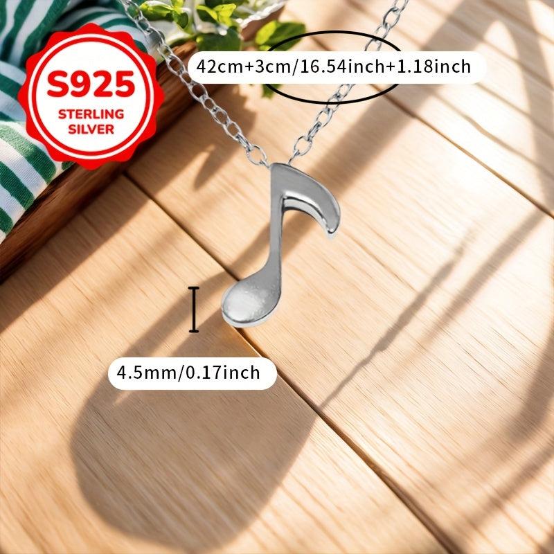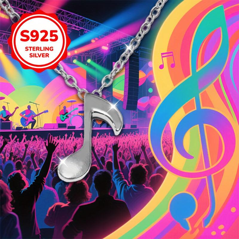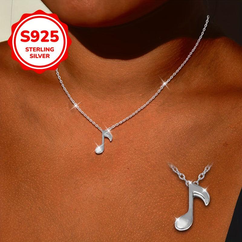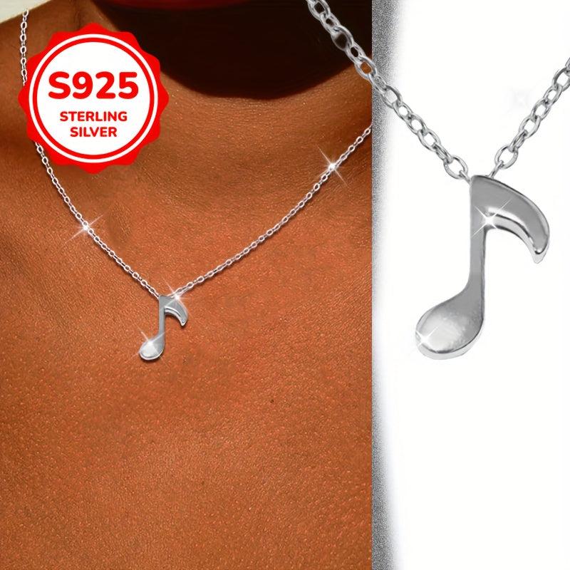 Elegant S925 silver pendant necklace featuring musical notes & guitar, perfect for Valentine's, Mother's Day, weddings. Hypoallergenic and ideal for music enthusiasts. Make her day special with this music-themed jewelry.