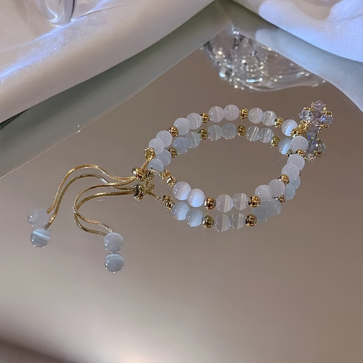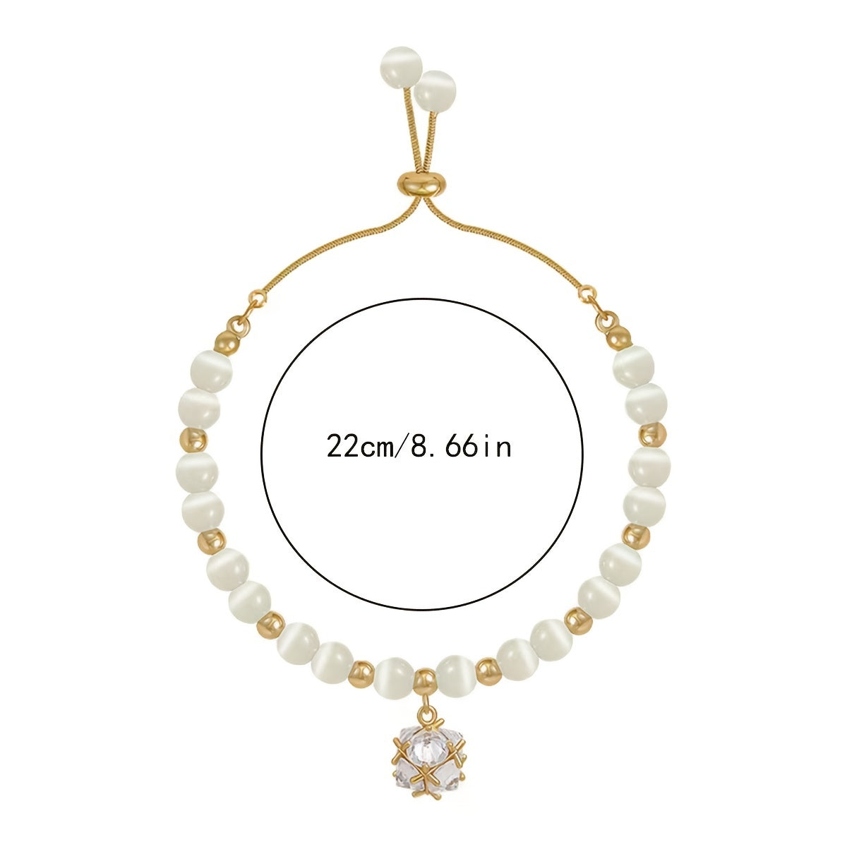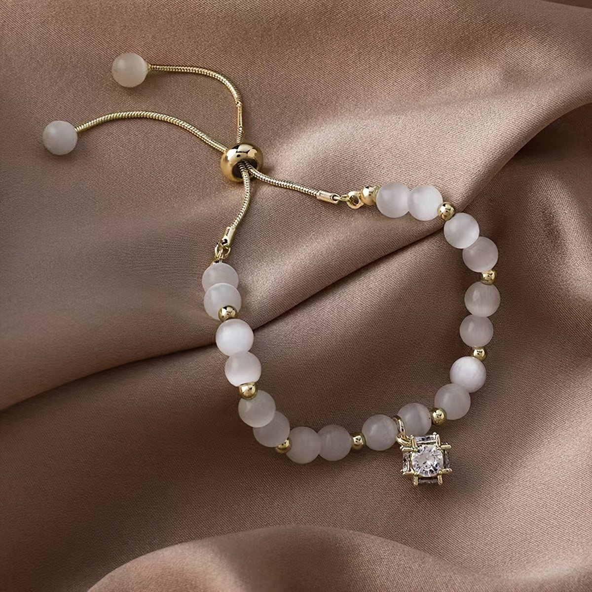 Opal Bead Bracelet with Zircon Pendant Adjustable Chain