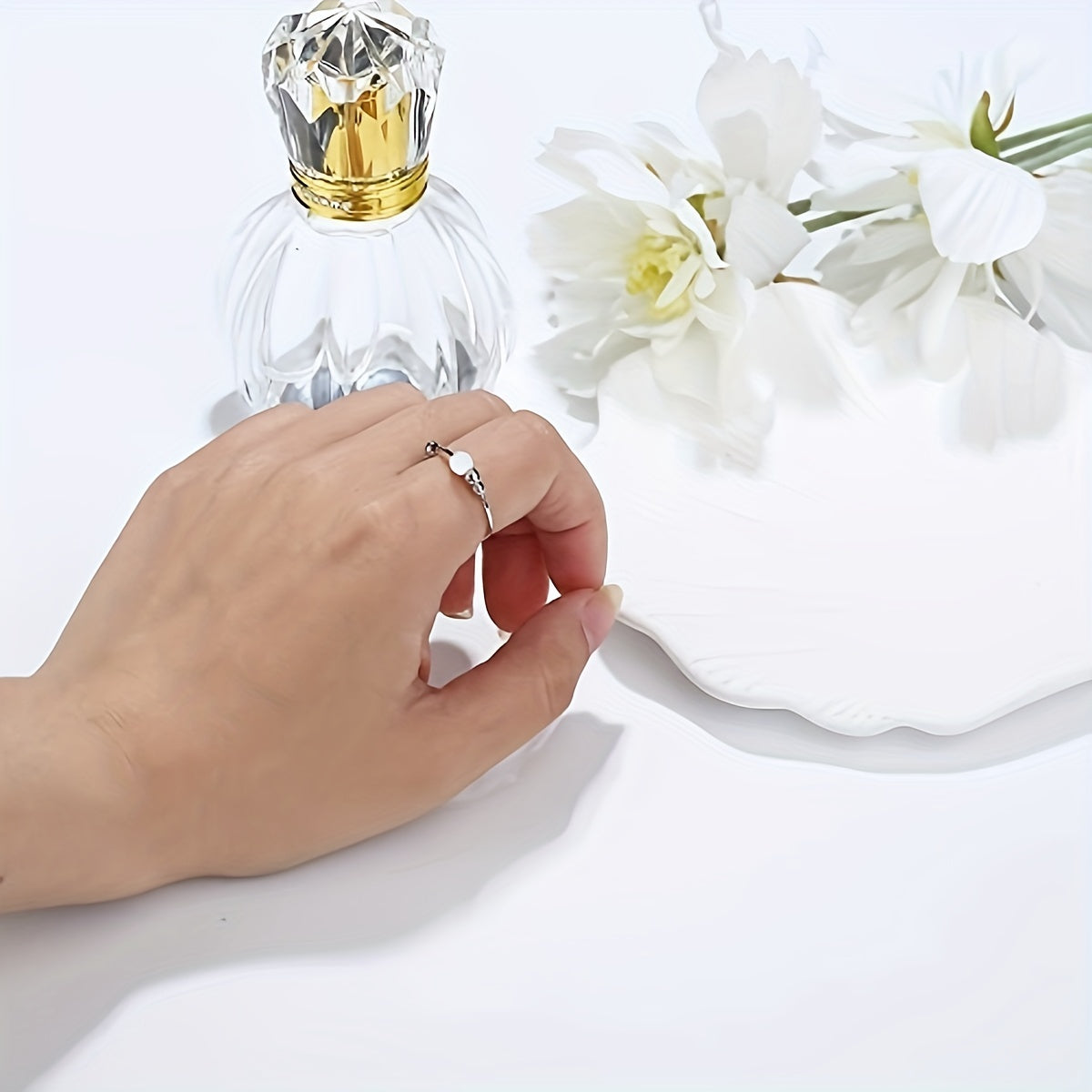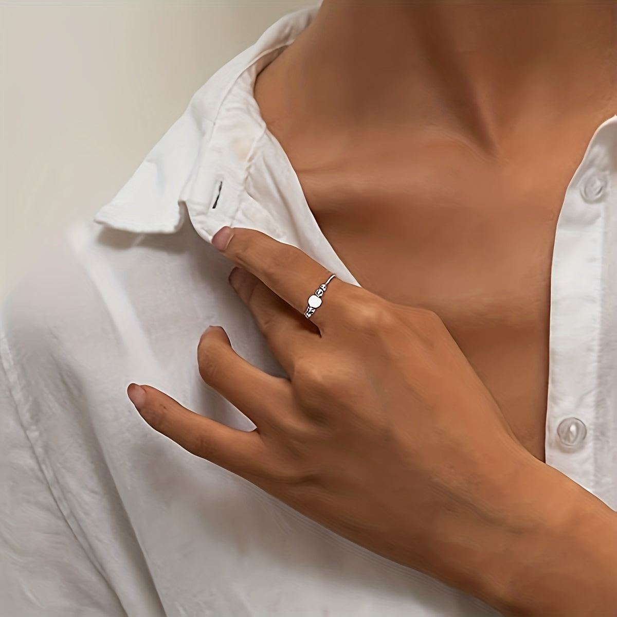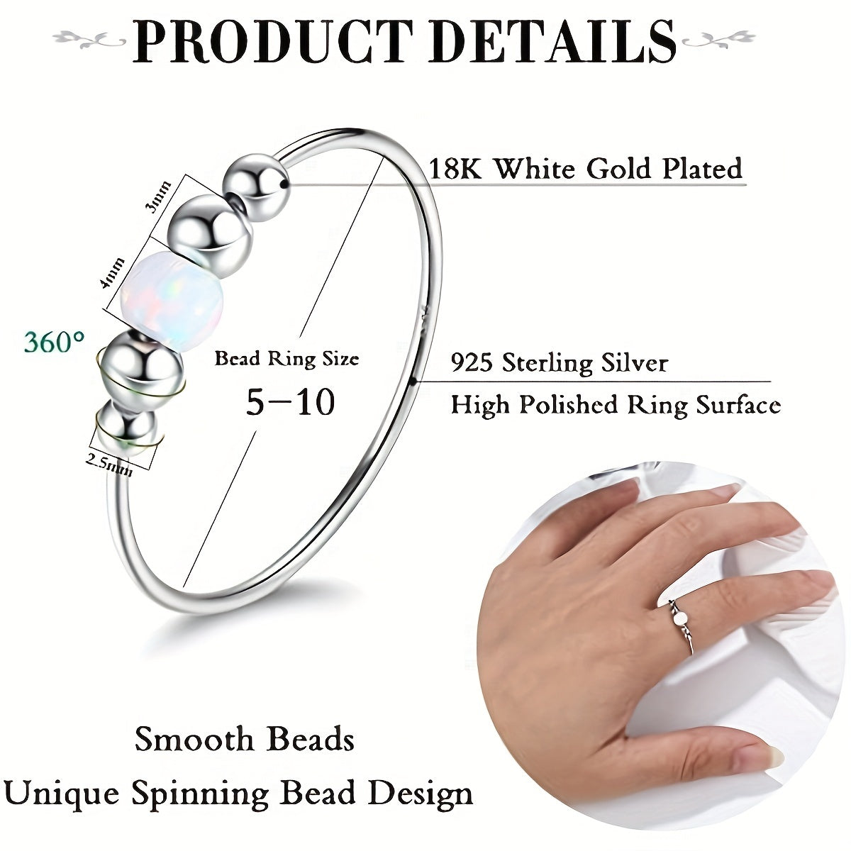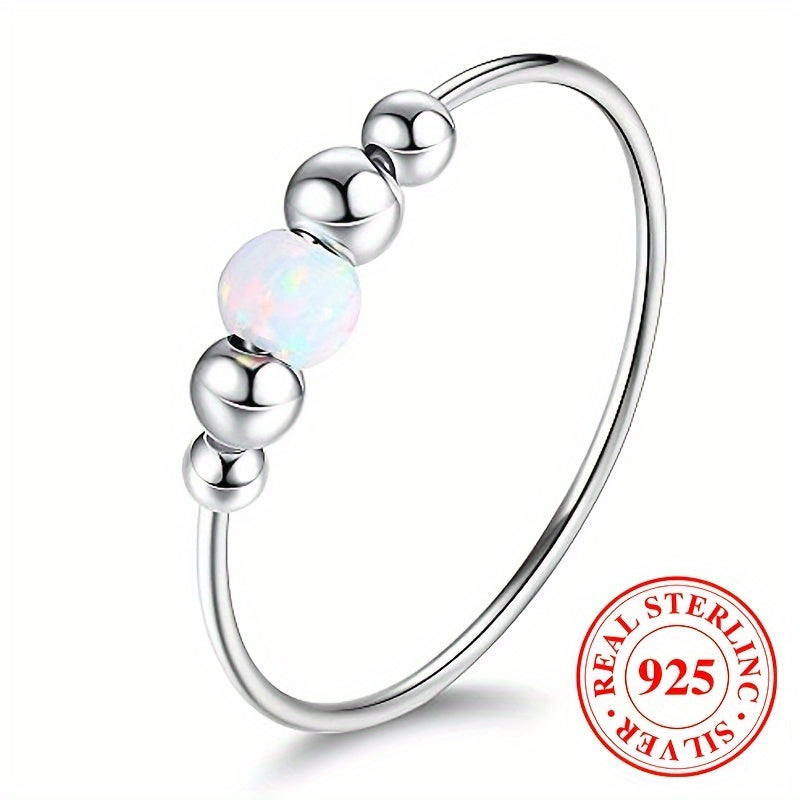 This sterling silver spinner ring features a round cut opal inlay, perfect for helping with anxiety. A stylish and calming accessory.
