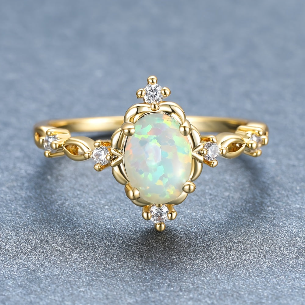 Elegant opal oval stone engagement ring for a charming women's wedding look.