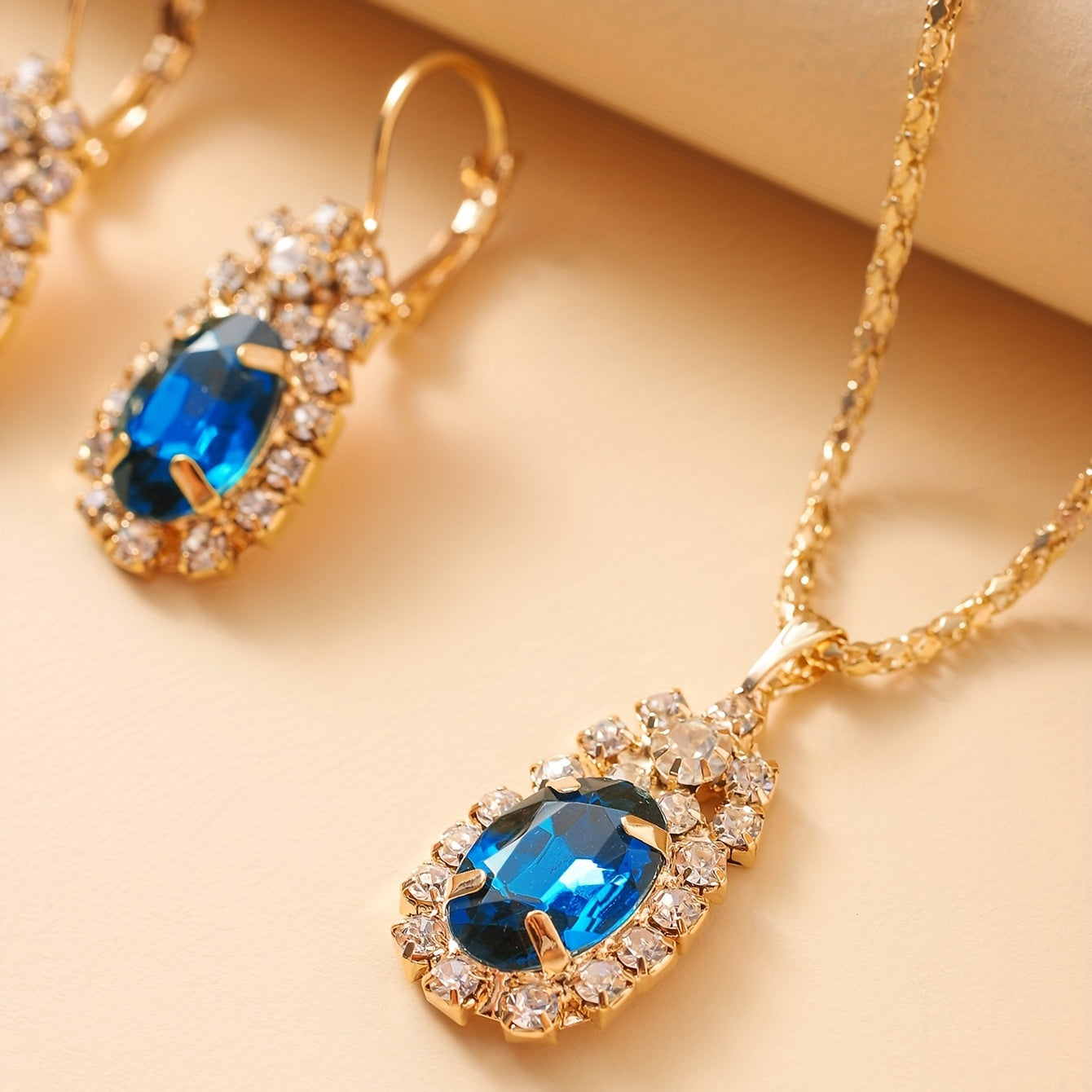 • Includes oval necklace, earrings, and ring