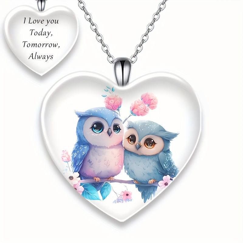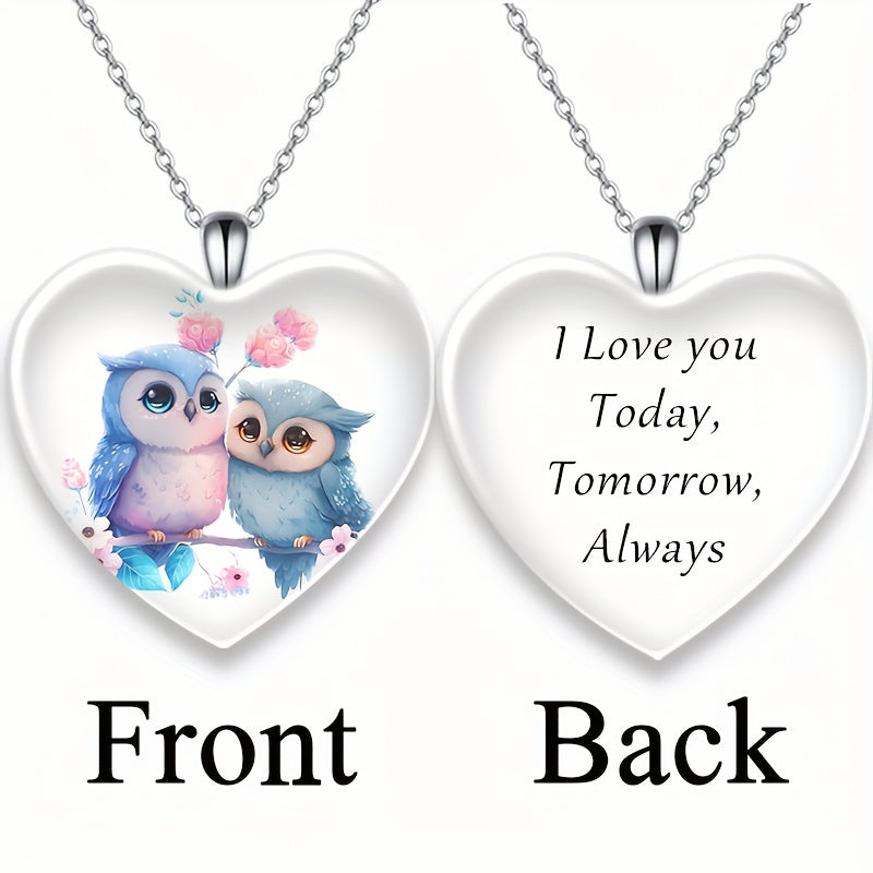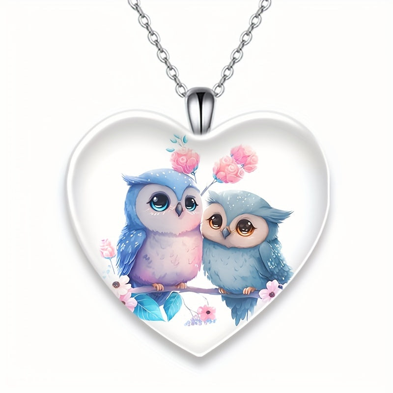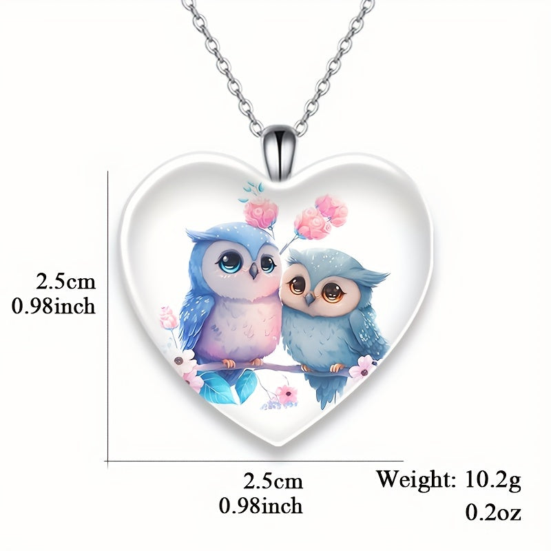 Adorn yourself or gift your loved one with this charming heart-shaped crystal pendant necklace featuring an owl design. Perfect for banquets, holiday parties, and special occasions.
