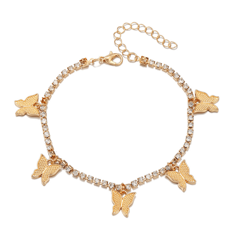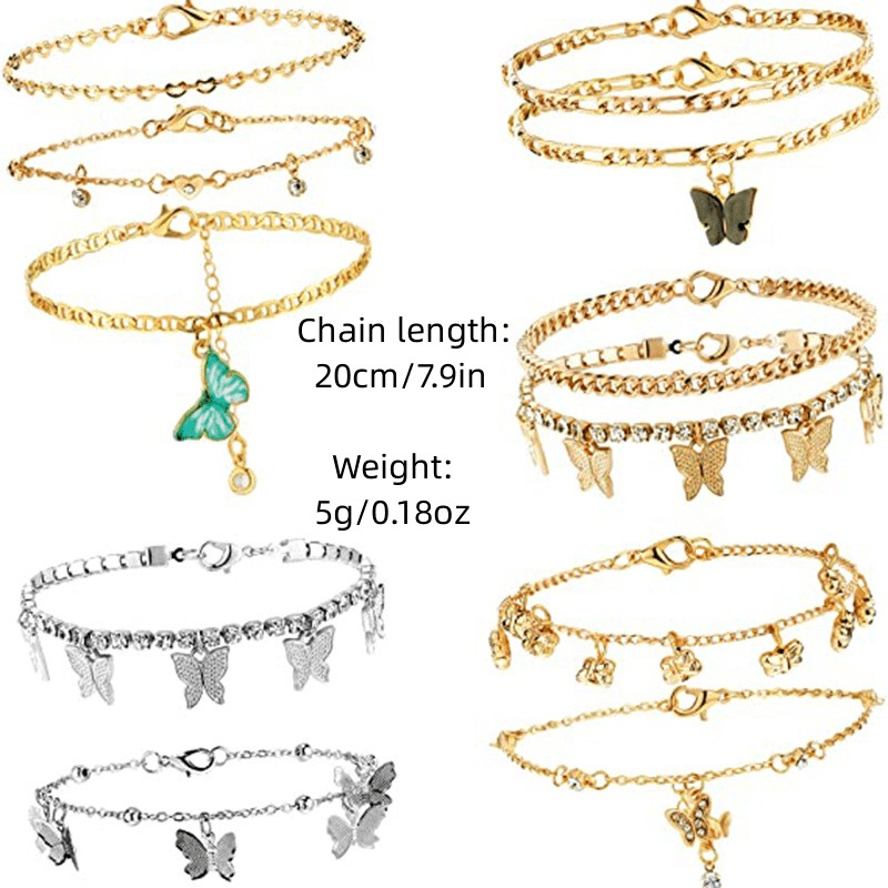Personality Butterfly Tassel Pendant Chain Anklet Stackable Ankle Bracelet