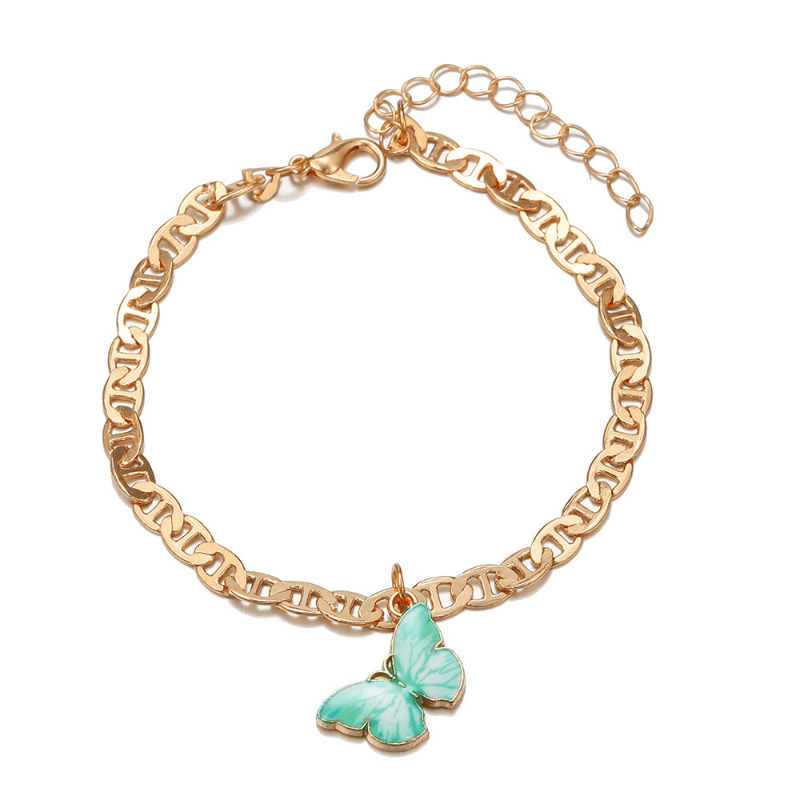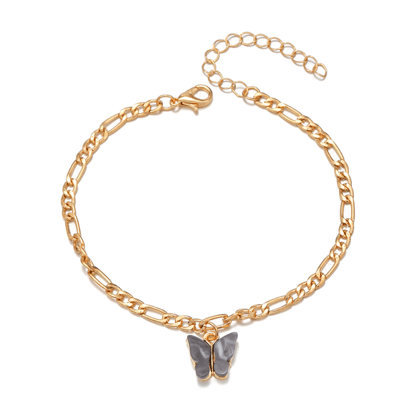 This anklet features a butterfly shape tassel pendant on a chain design, perfect for adding a touch of personality to your ankle. Stackable design for a layered look.