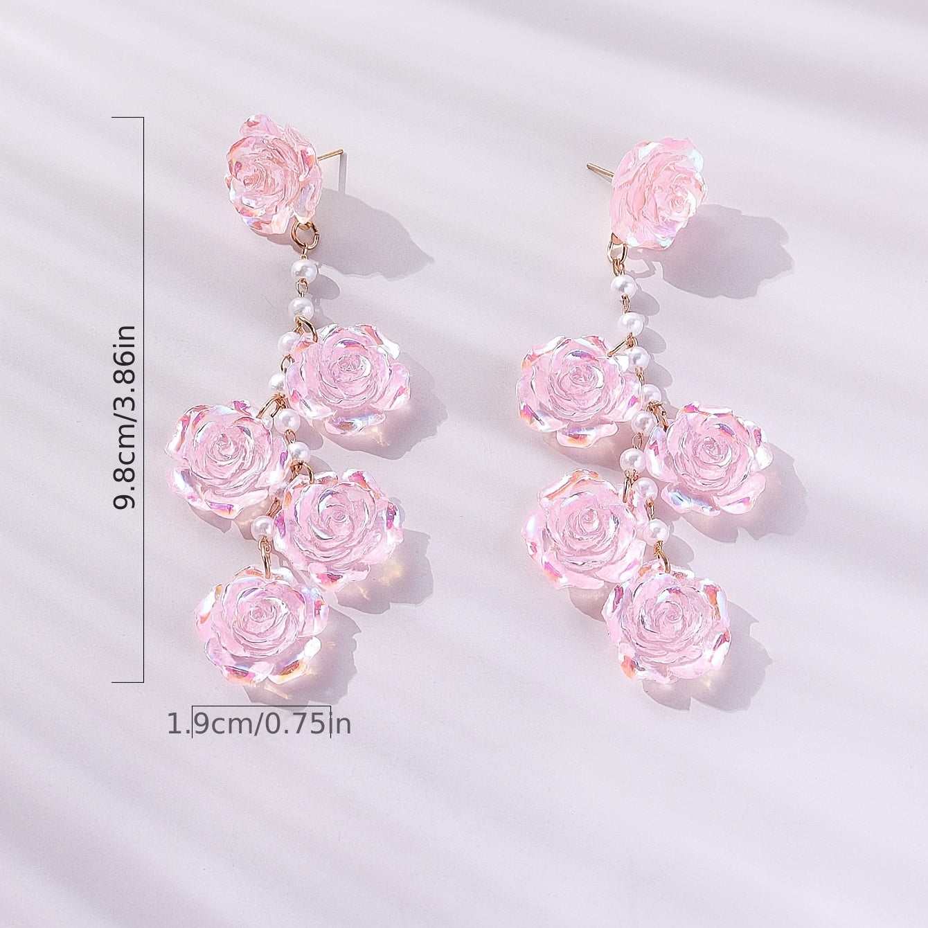 Add a touch of floral elegance to your look with these beautiful pink rose flower earrings featuring faux pearl accents. Perfect for women who love sophisticated and feminine accessories.