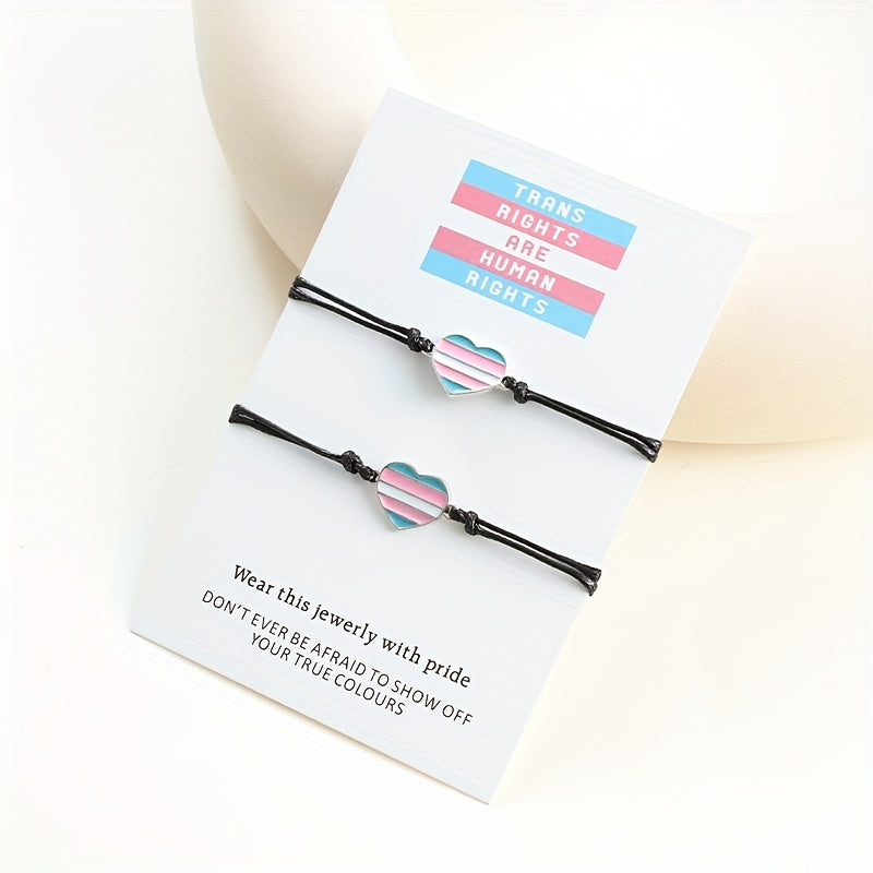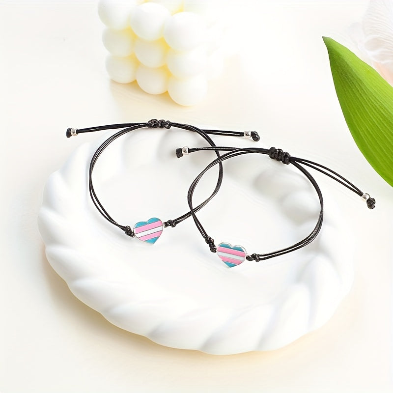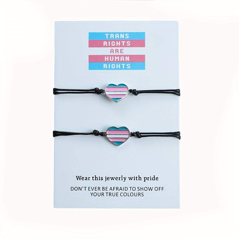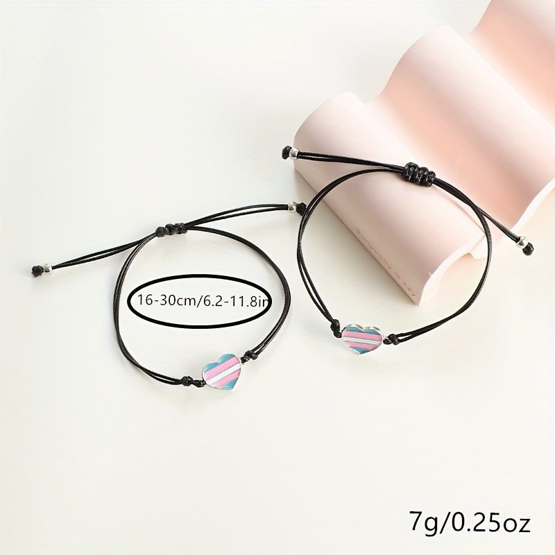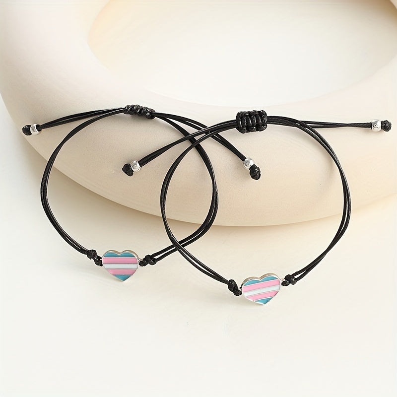 Rainbow Love Heart Pride Bracelet Set, 2 Pcs