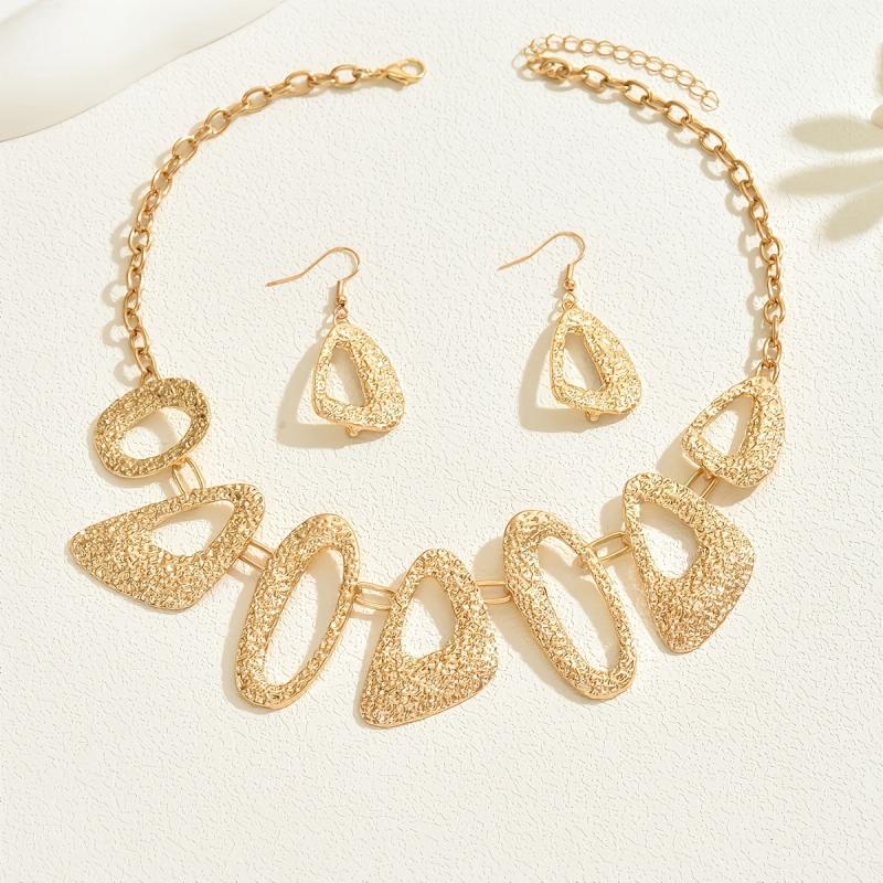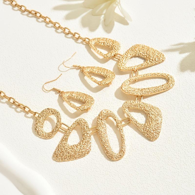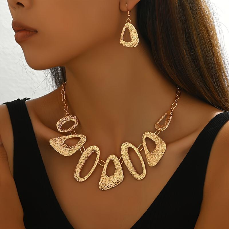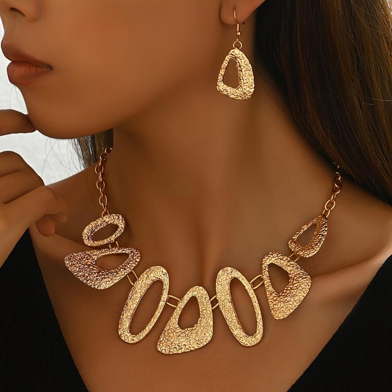 Elegant and stylish set featuring retro metal geometric designs with pleated textured triangle and oval spliced elements.