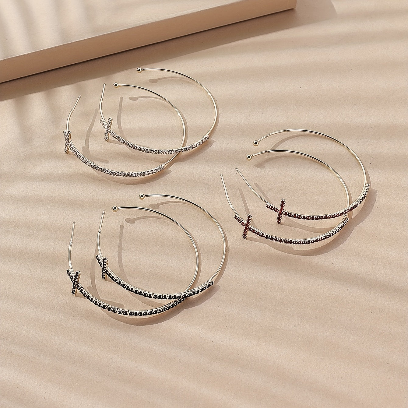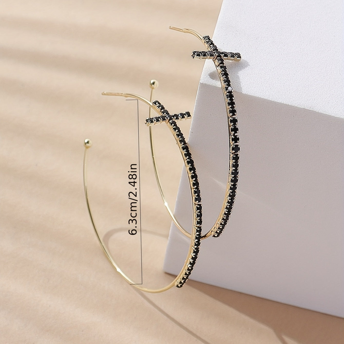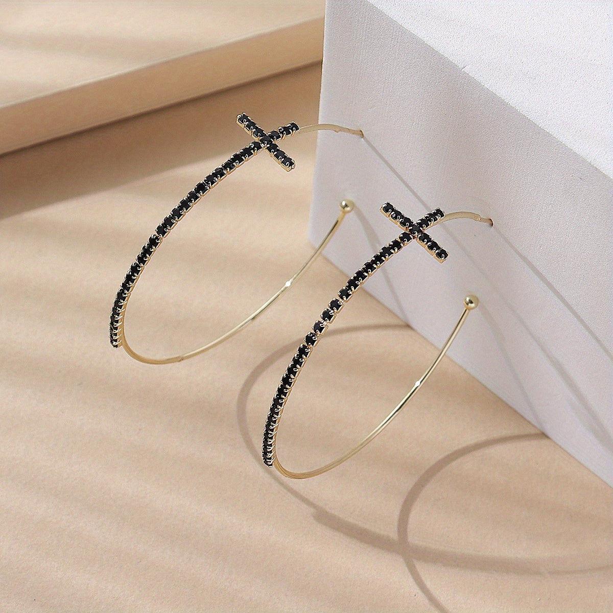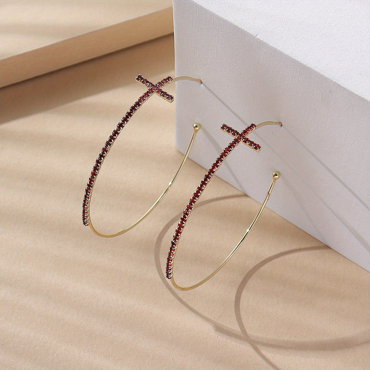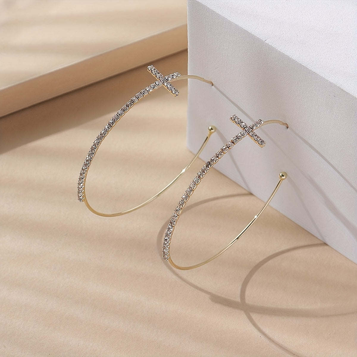 These hoop earrings feature a cross design inlaid with sparkling rhinestones, making them a perfect accessory for a vintage or retro look. They are made of high-quality copper and can be a great gift for any female.