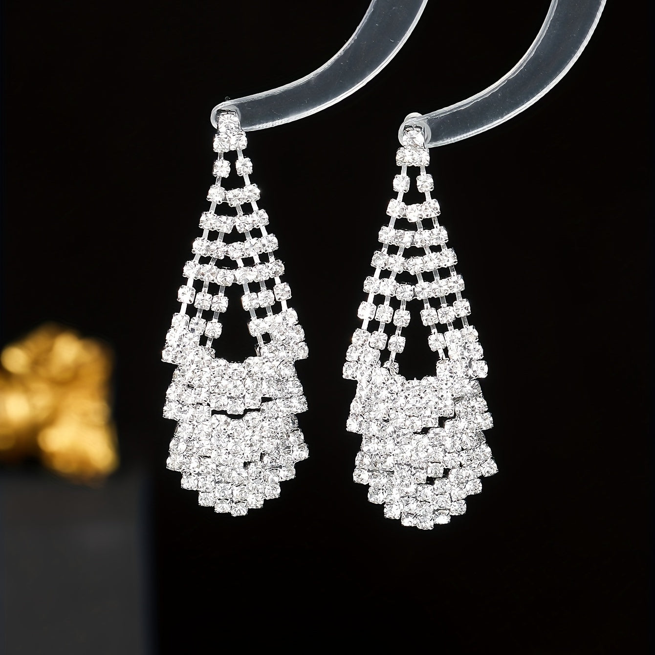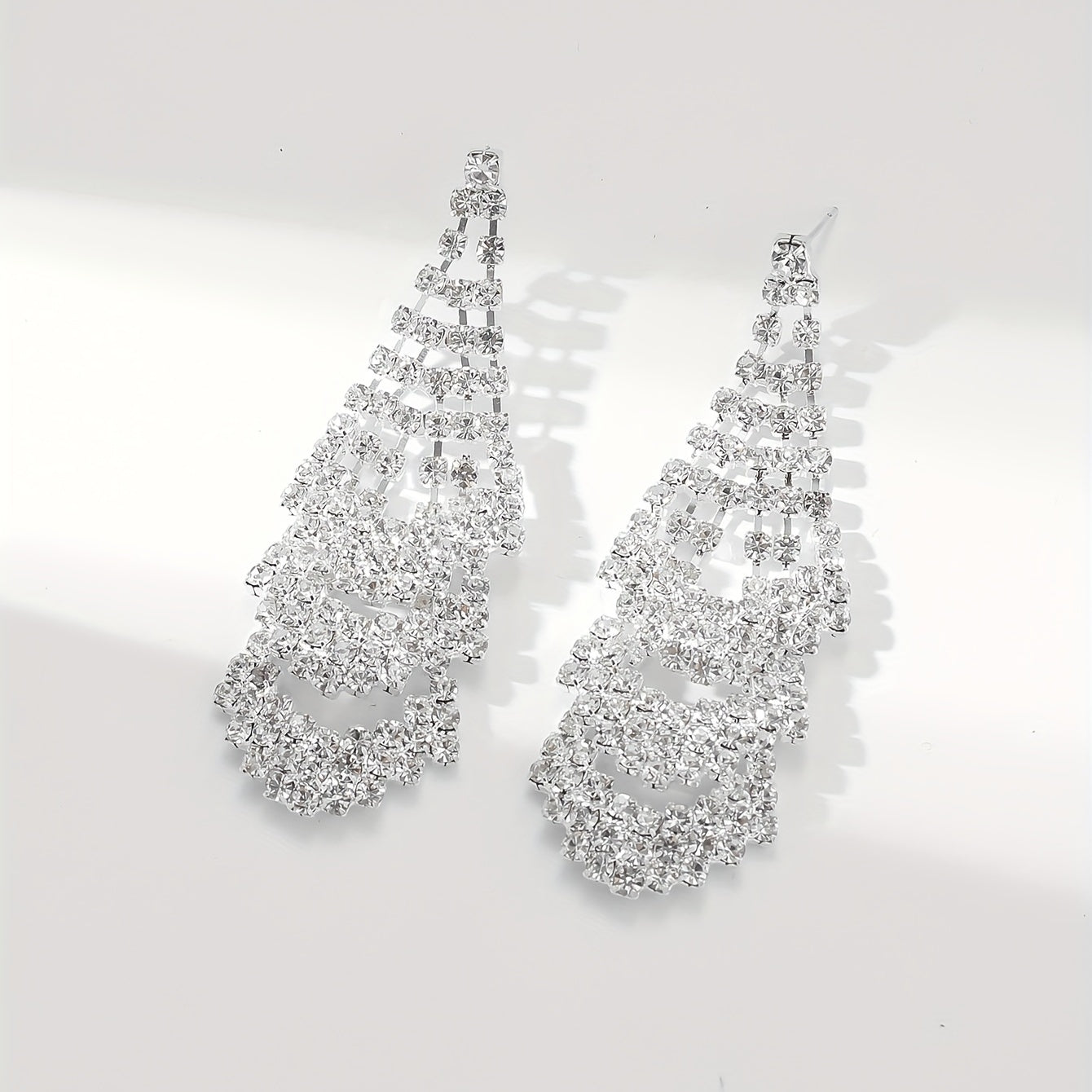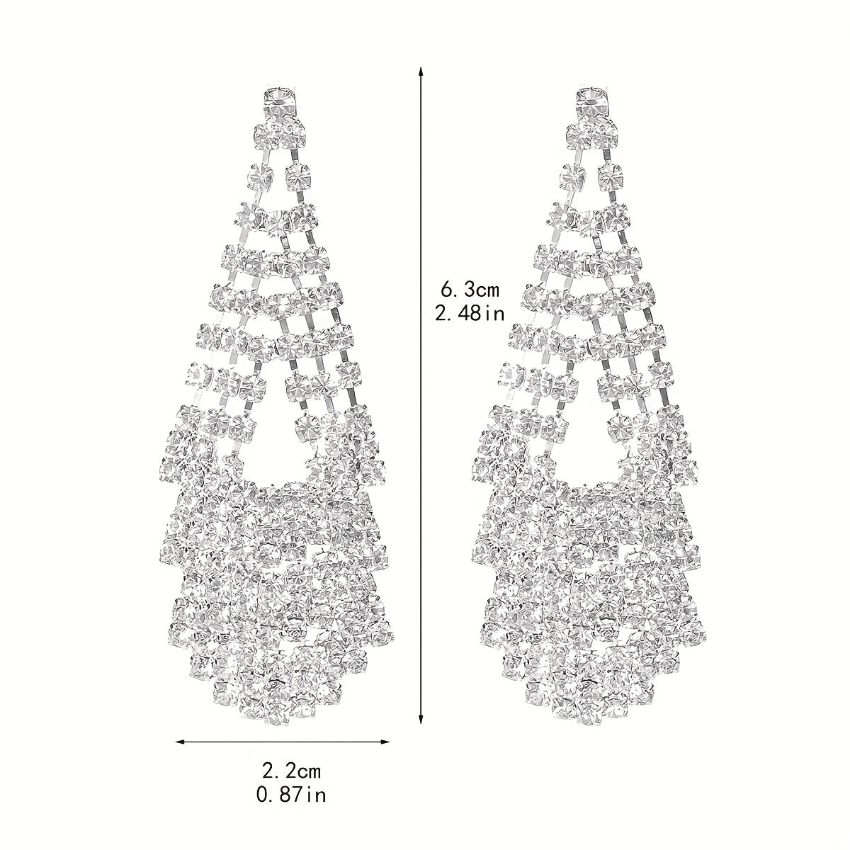 Elegant sparkling rhinestone tassel dangle earrings crafted from copper with silver plating, perfect for weddings or special occasions.