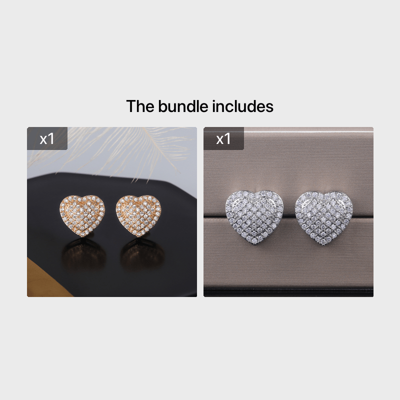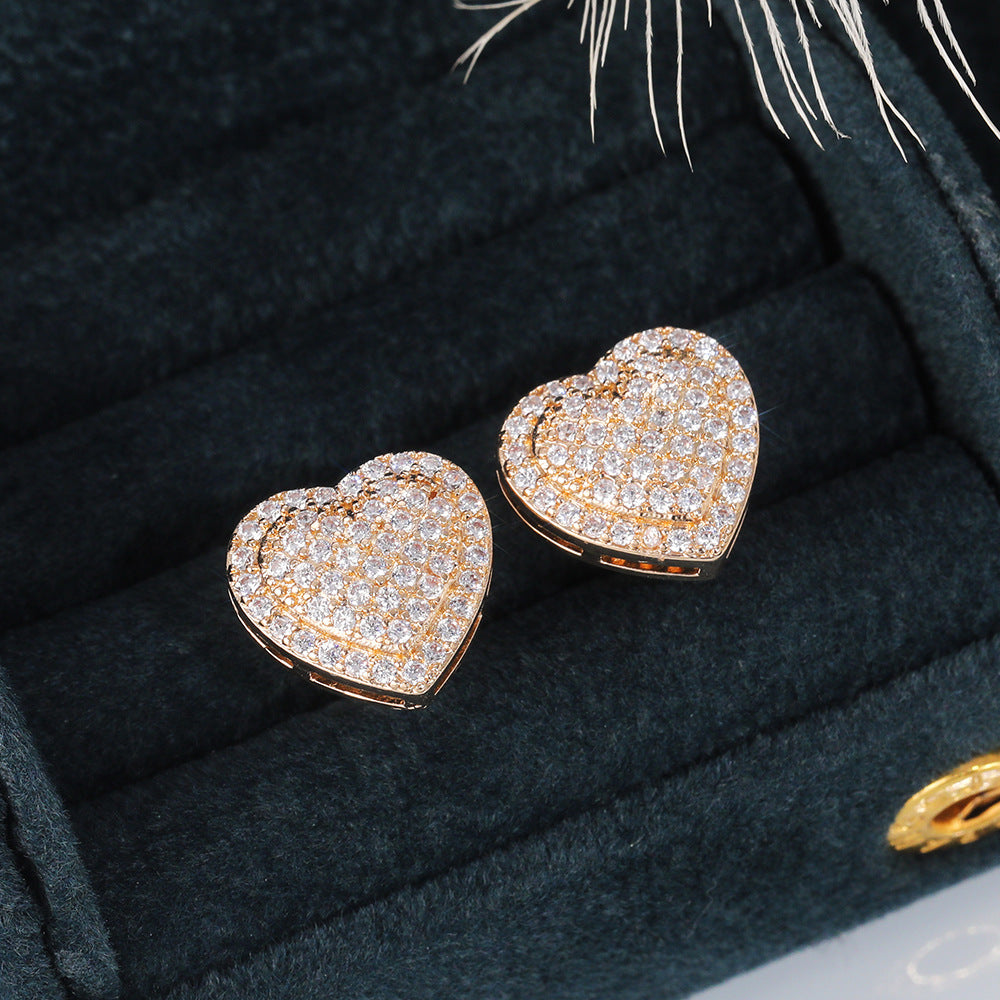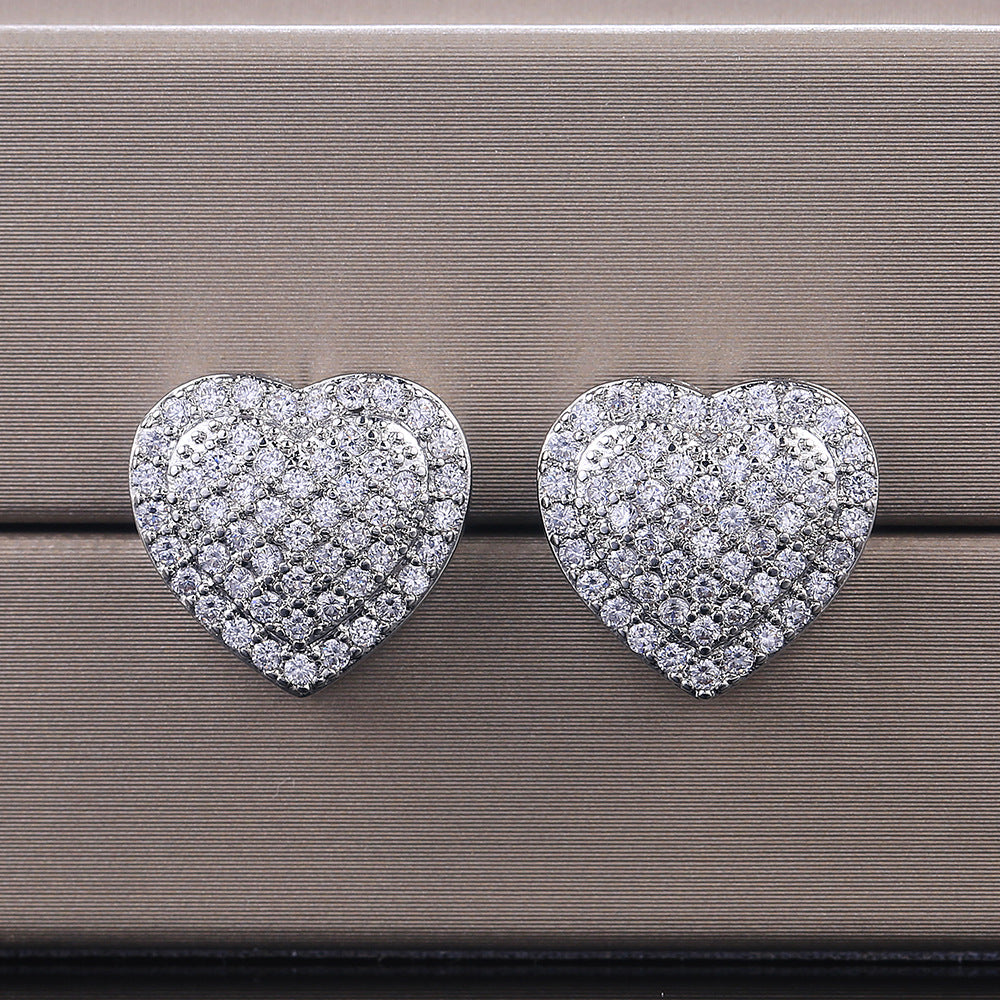Elegant and romantic, these heart-shaped stud earrings feature micro inlay zircon for added sparkle.