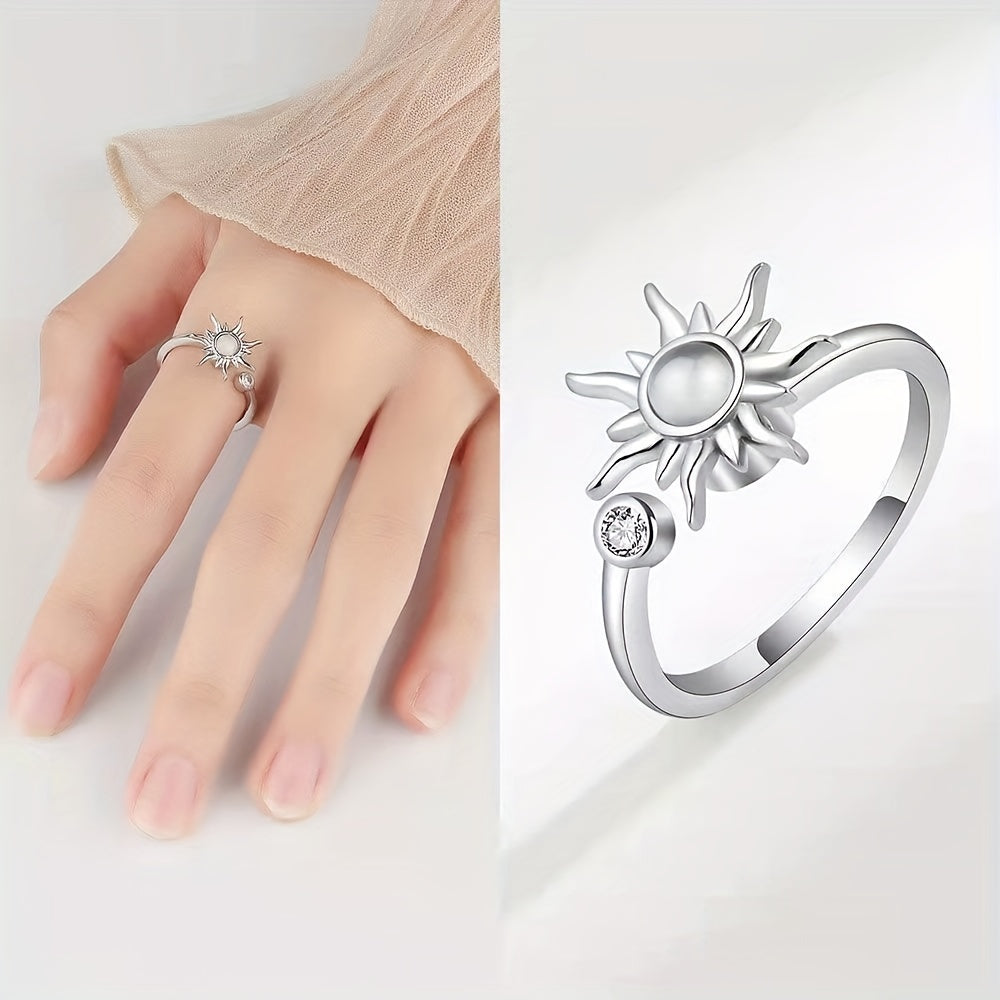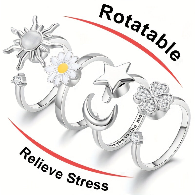 This stylish and unique decompression ring is designed to help relieve anxiety and stress. The rotatable opening allows for interactive play and relaxation.