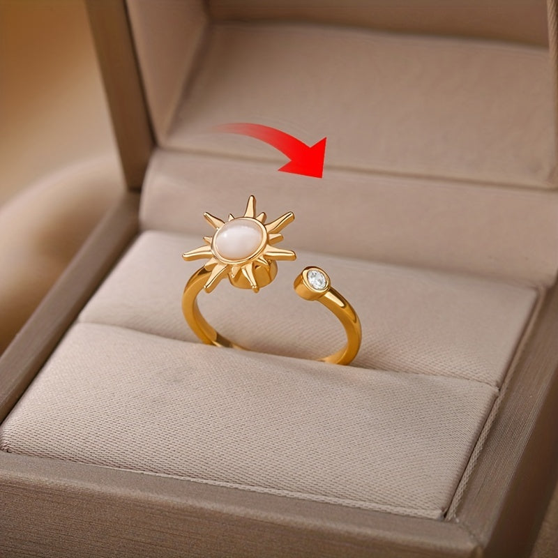 Rotating Sun Opal Ring For Women Stainless Steel Open Charm Adjustable