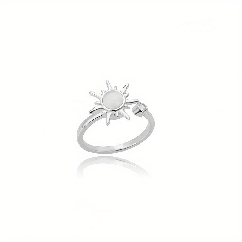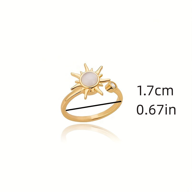 This stunning rotating sun opal ring is a perfect jewelry gift for women. Made of stainless steel, this adjustable ring features a charming design with a beautiful opal centerpiece that catches the light. Ideal for everyday wear or special occasions.