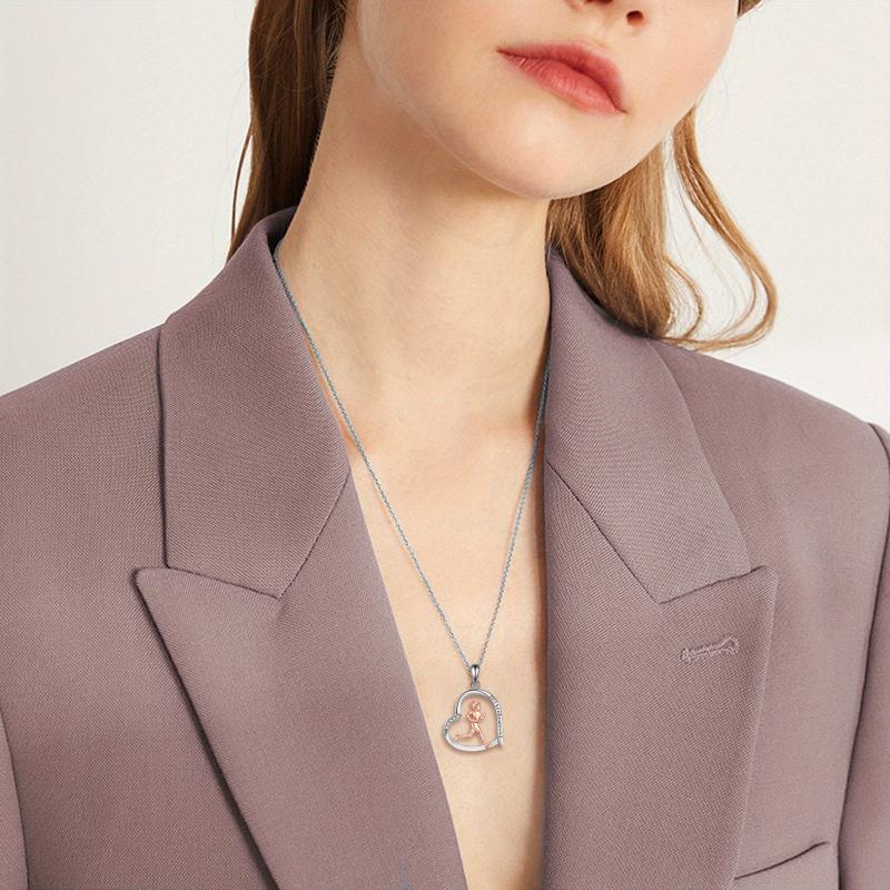 Elegant 925 sterling silver necklace featuring a running pendant, perfect gift for female runners and sports enthusiasts. Show your love for running with this inspirational jewelry piece.