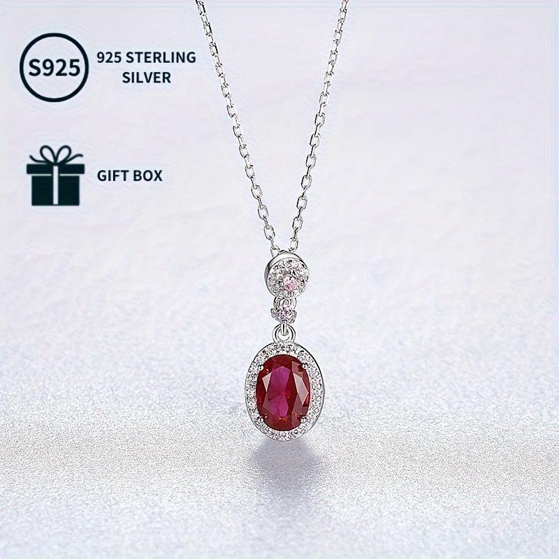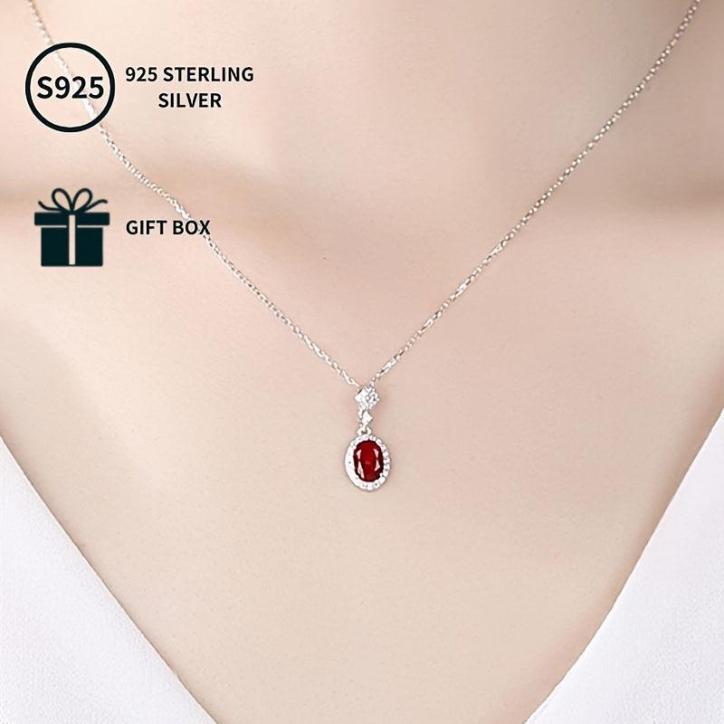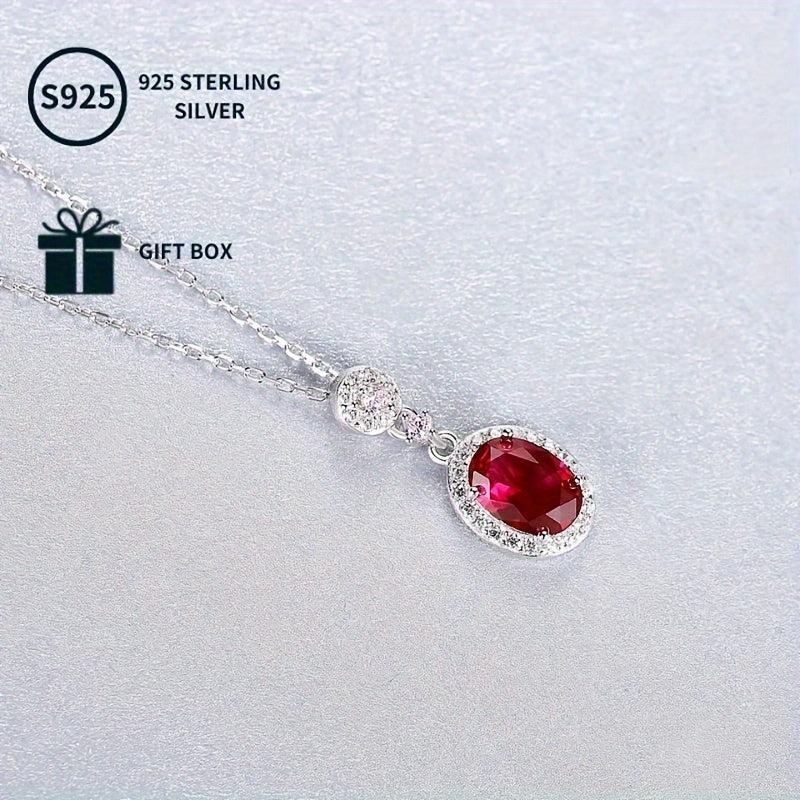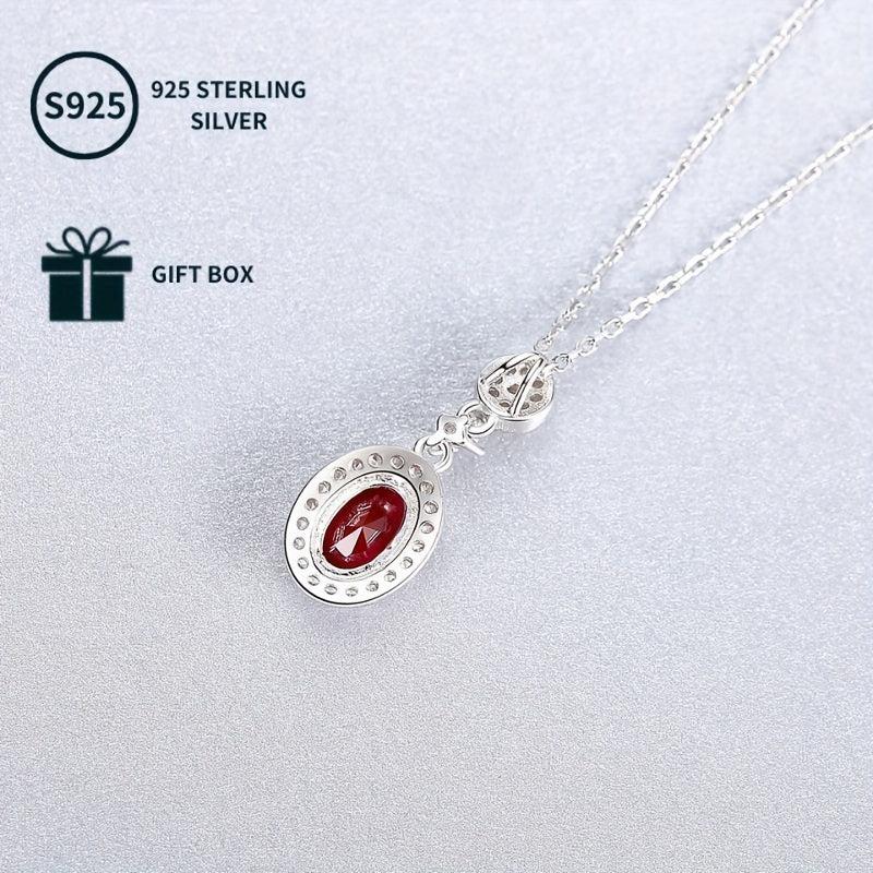 This unique necklace features an egg-shaped red pendant crafted from S925 sterling silver, a fresh and fashionable accessory that adds a gentle touch to outfits.