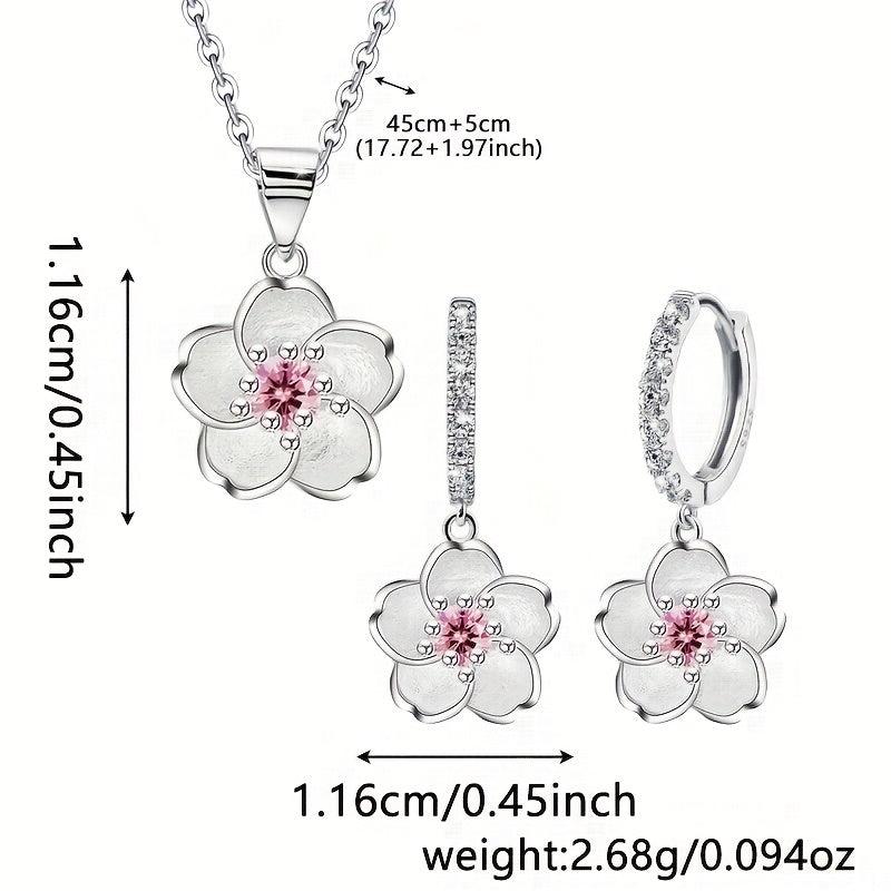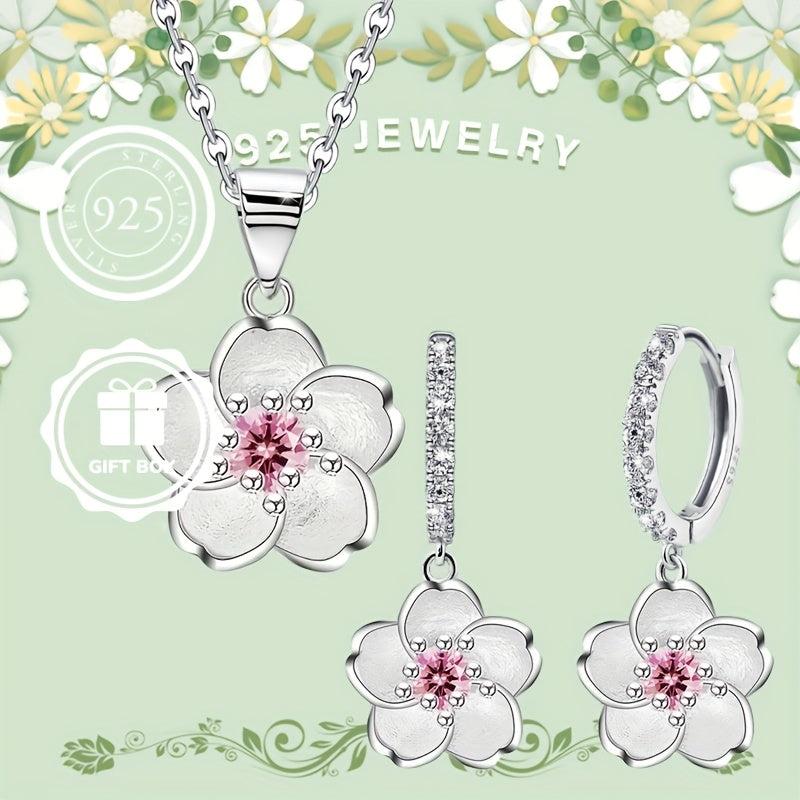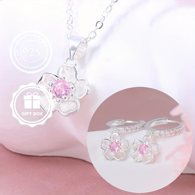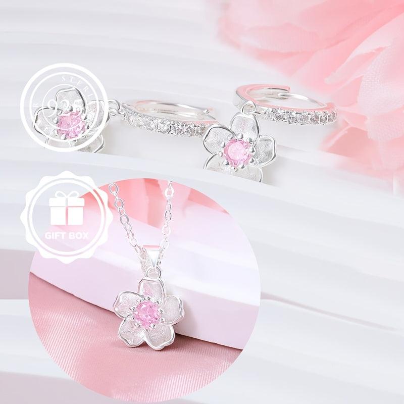 Add a touch of romance with this Sakura jewelry set featuring pink CZ cherry blossoms. Perfect for a romantic look or gift.
