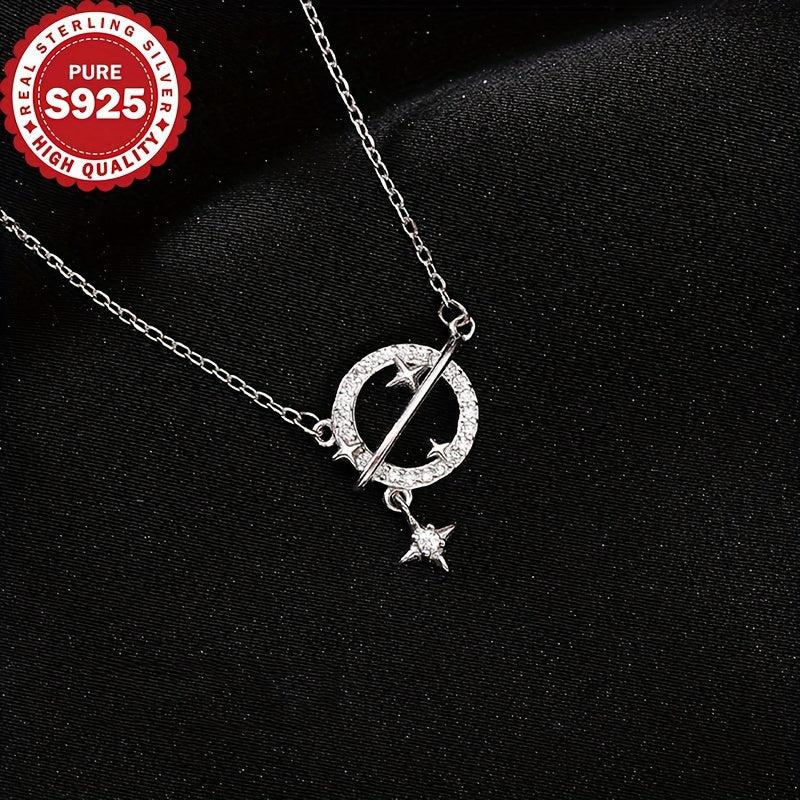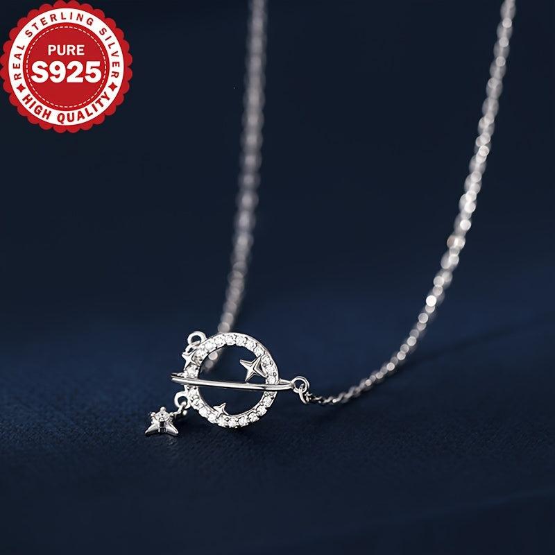 Elegant S925 pure silver necklace featuring a unique planet pendant design, ideal for clothing matching and gifting. Hypoallergenic and stylish.