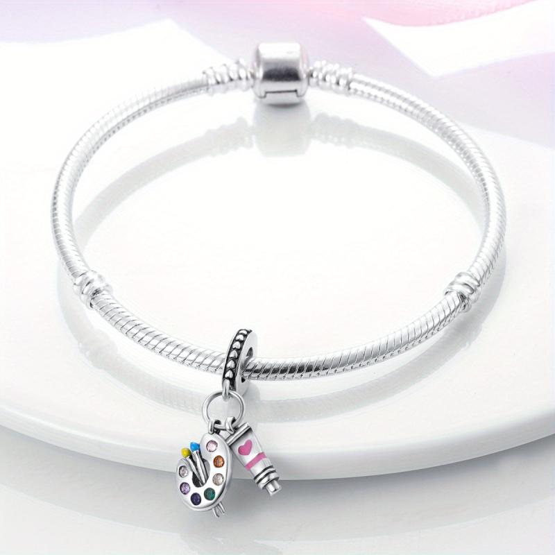 S925 Pure Silvery Pendant with Painting, Colorful Matching Bracelet, Necklace