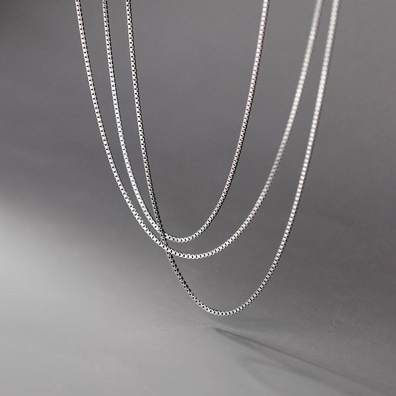 This s925 silver box chain necklace is thin, durable, and versatile, making it an ideal accessory for any occasion. It is a great holiday gift for men and women alike.