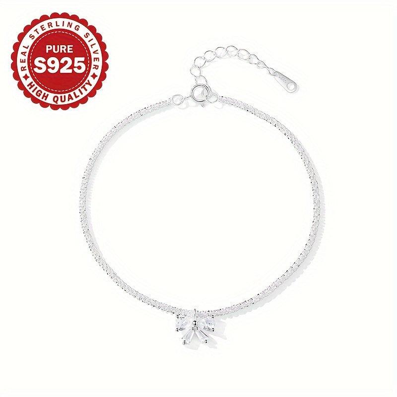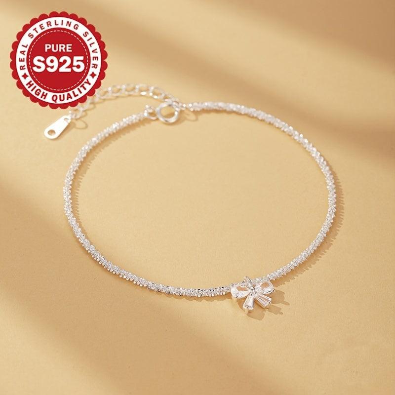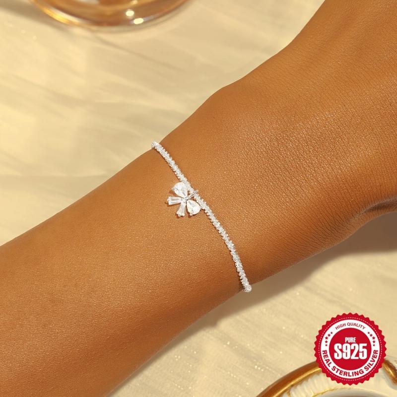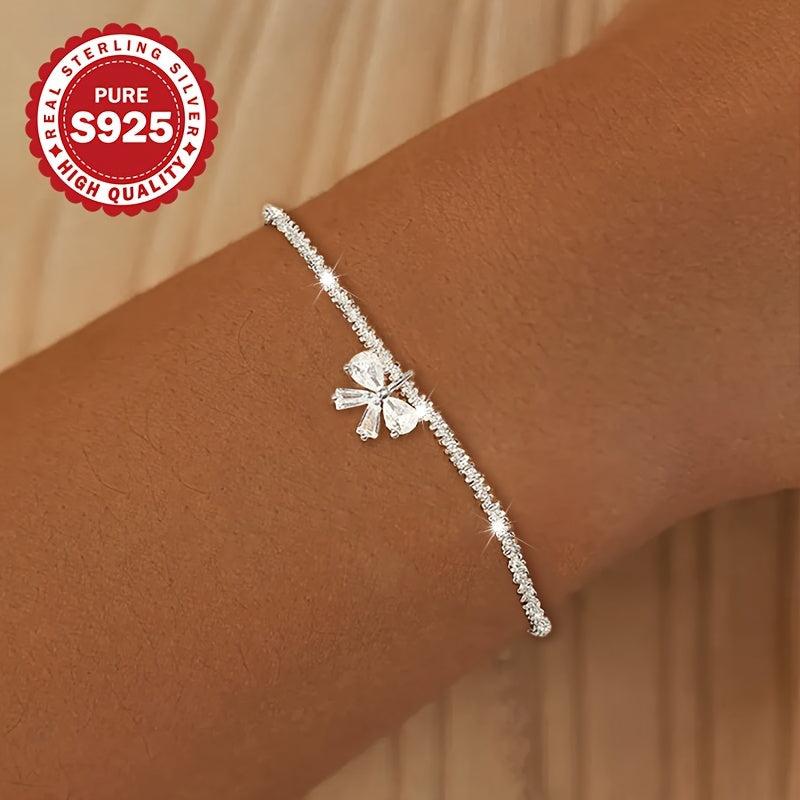S925 Silver Floral Bow Women's Bracelet 2G for Parties, Banquets, Weddings