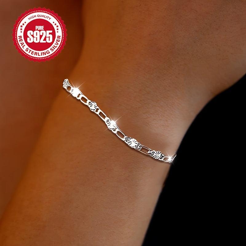 S925 Silver Flower Chain Bracelet & Hip Hop Style Gift for Women