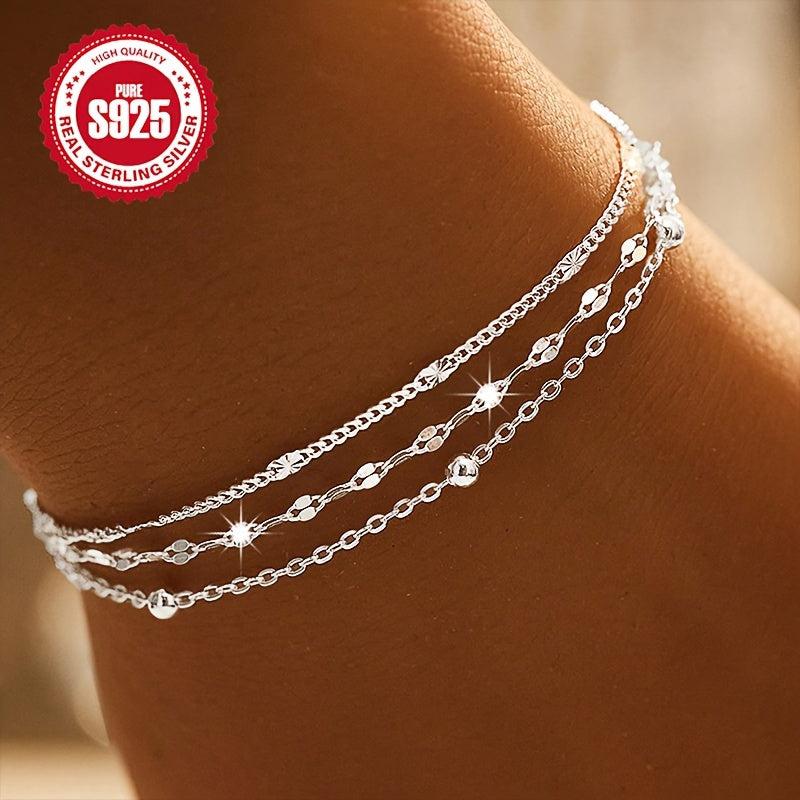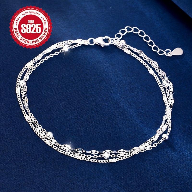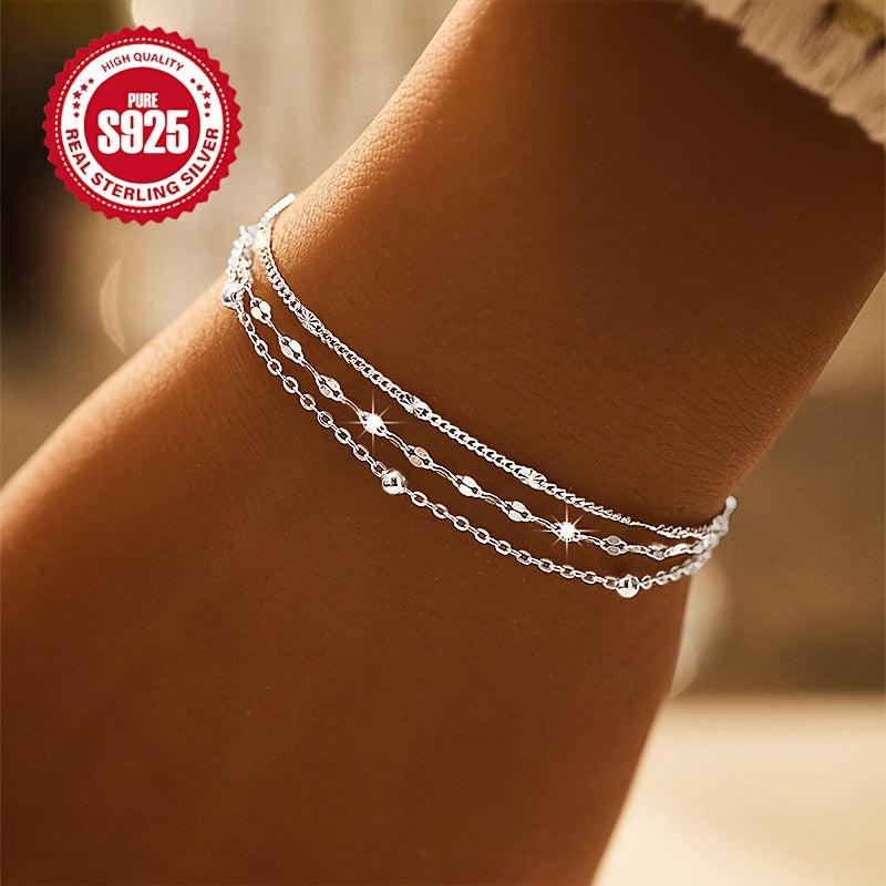 This women's bracelet is crafted from premium S925 silver and features a layered minimalist design that sparkles elegantly. Perfect for sunrise parties or as a Christmas gift.