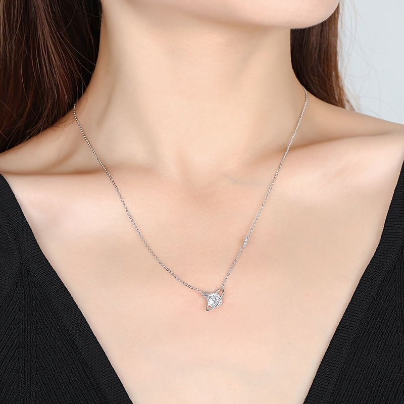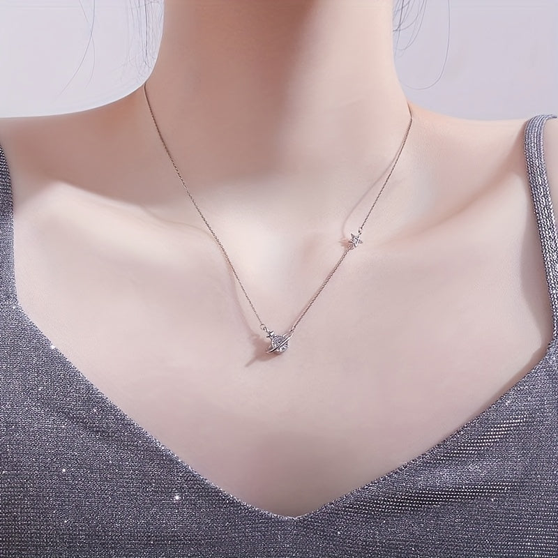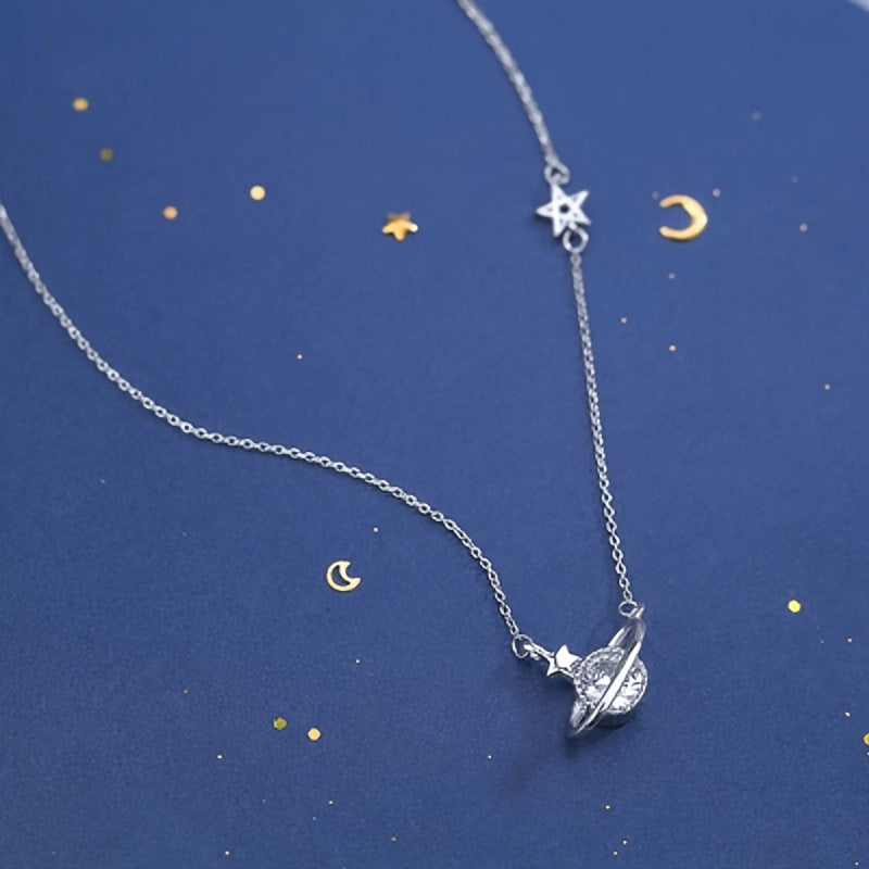 Get this unique S925 silver pearl planet necklace designed with a hollow planet charm. It's a perfect gift for your girlfriend that combines elegance and style.