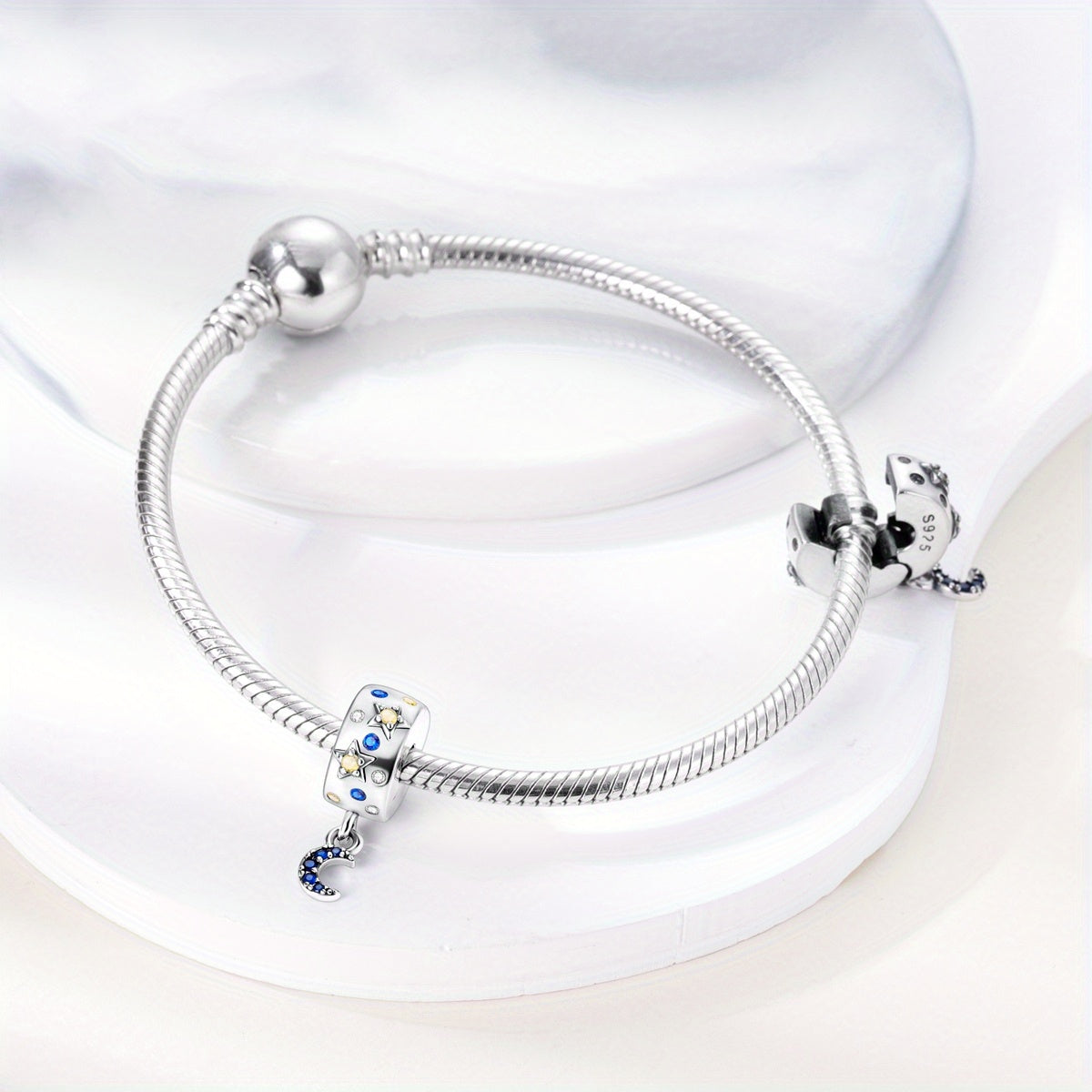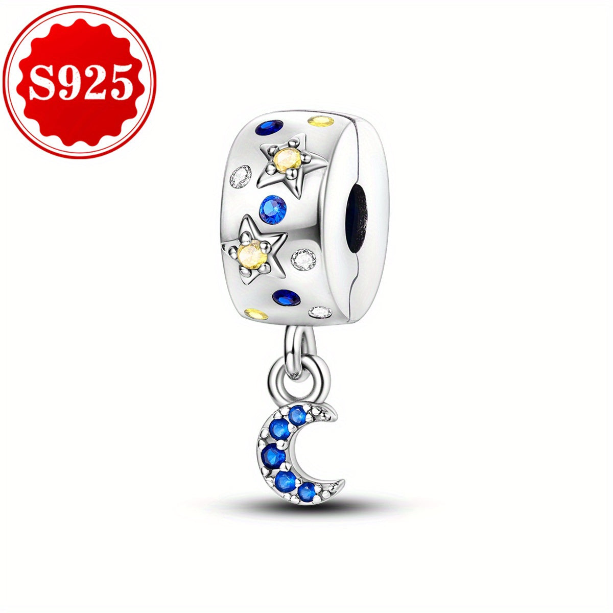 S925 Sterling Silver Bead Sparkling Star Moon Clip for Bracelet Necklace DIY