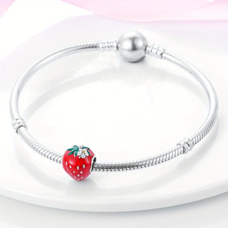 Add a touch of sweetness to your jewelry with this S925 sterling silver charm featuring a red strawberry. Perfect for bracelets and necklaces, this charm makes a great birthday gift for women.