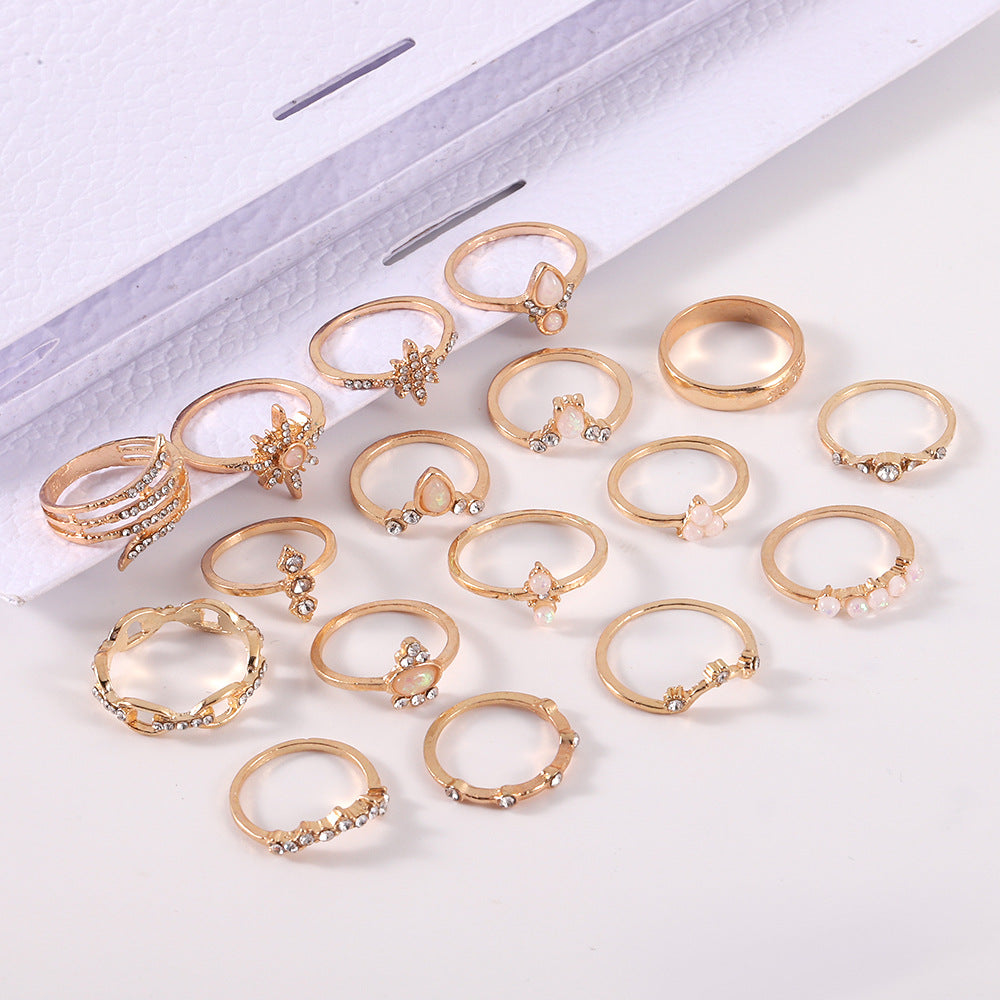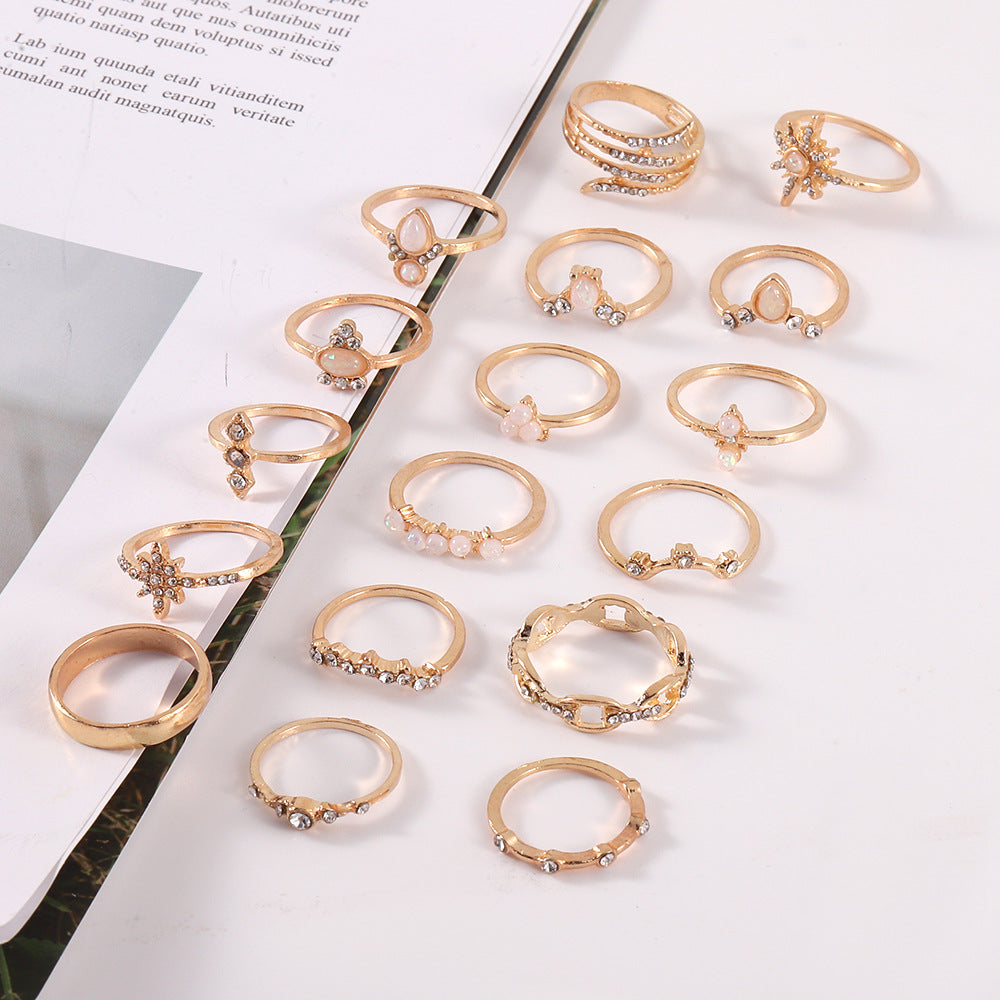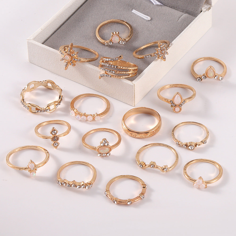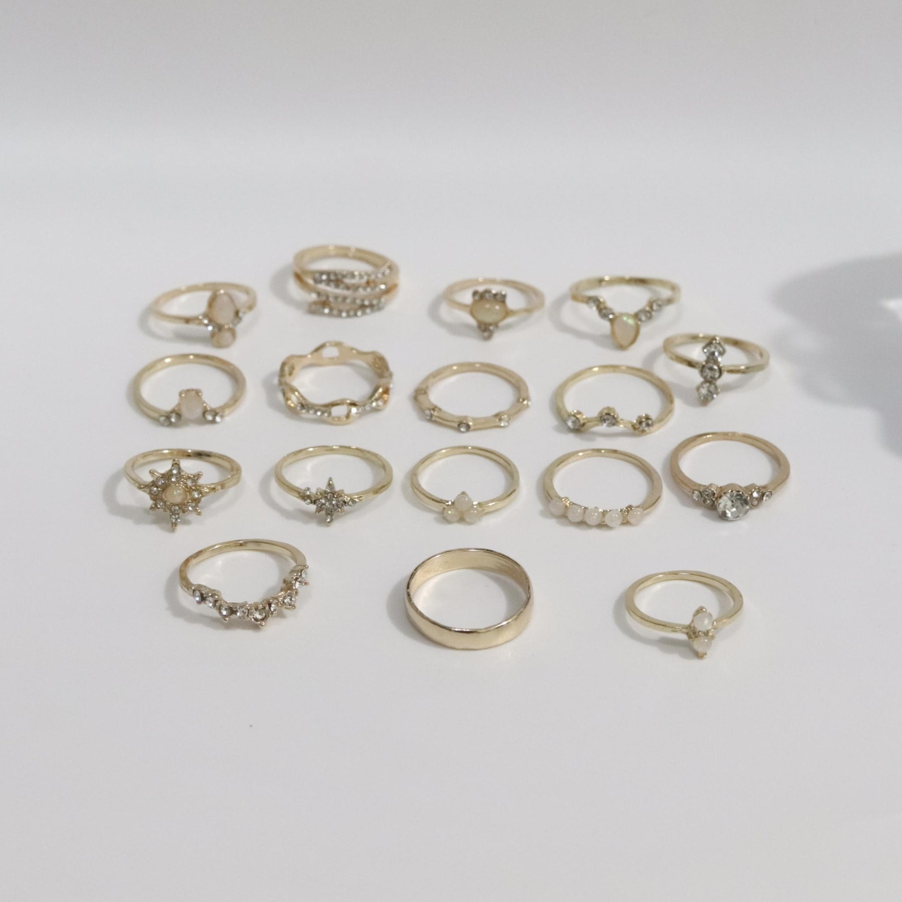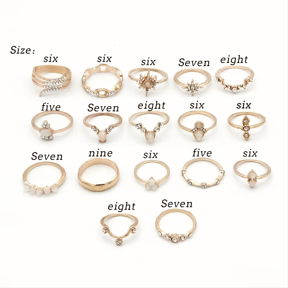 Set Of 17 Boho Rings Dainty Joint Finger Rings Charms Jewelry