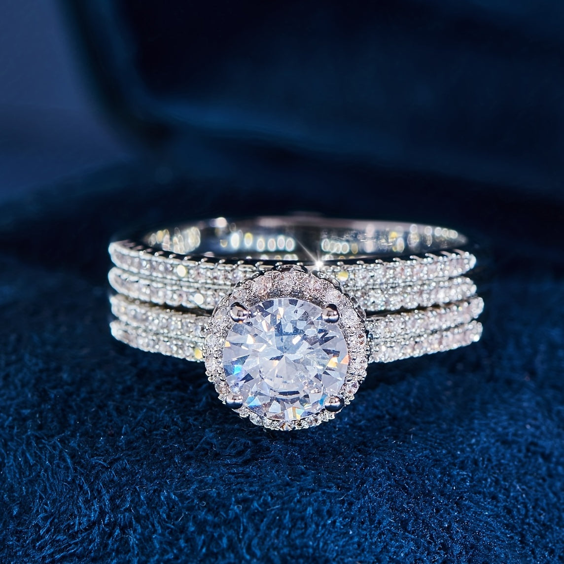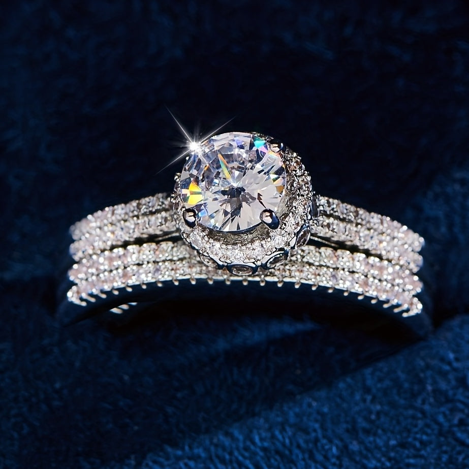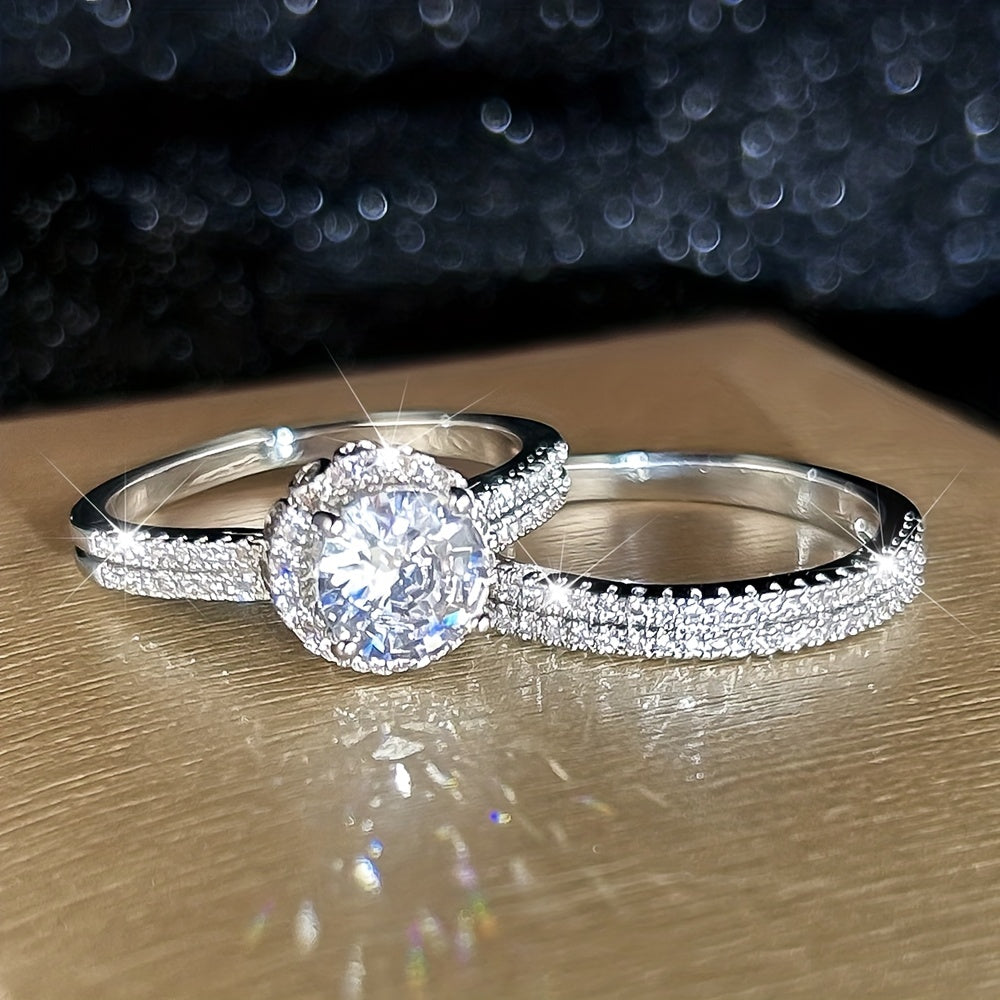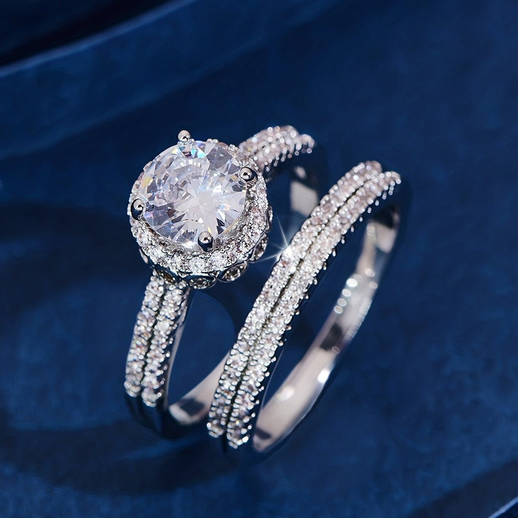 Add elegance to your look with these 18k plated stacking rings that are inlaid with sparkling zircons. Perfect for engagements, weddings, and evening parties.