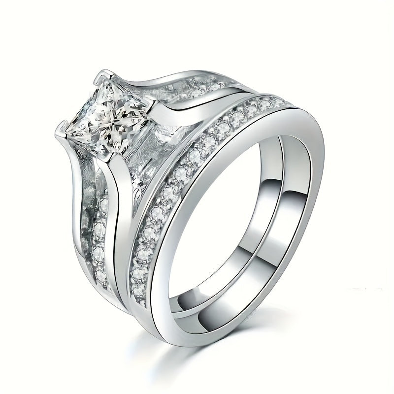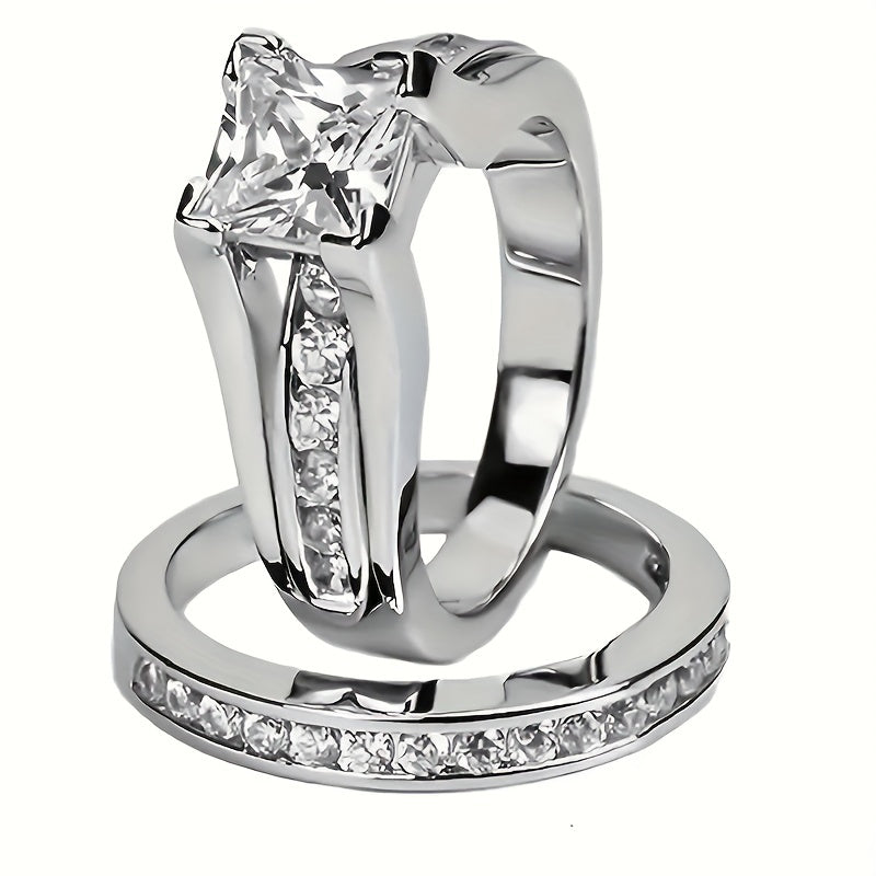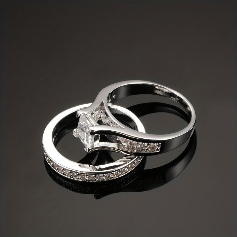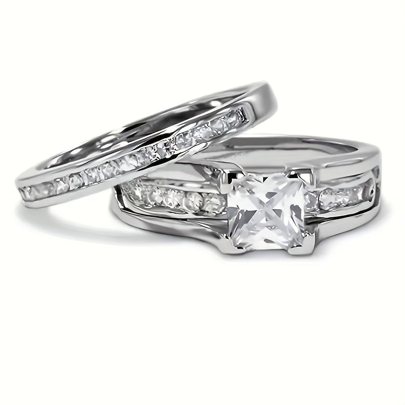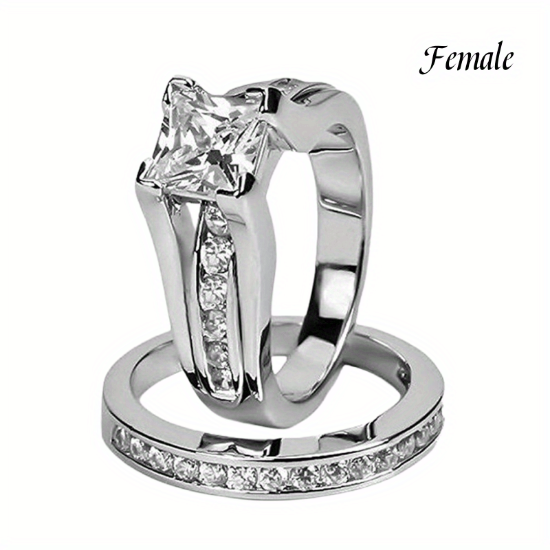 These 2pcs silver plated couple rings are perfect for young couples. They are inlaid with zircon and great for matching daily outfits. This women's promise ring is a symbol of love and commitment.