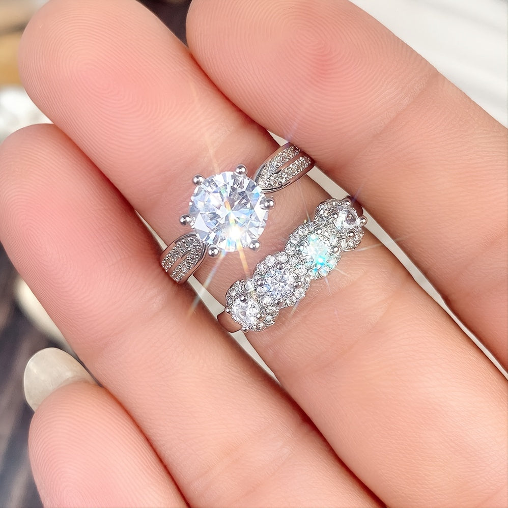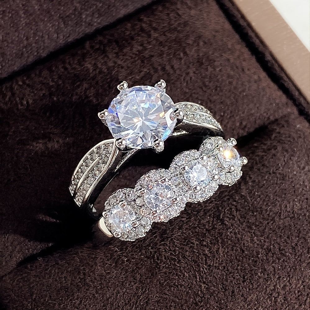 Silver Zircon Bridal Engagement Wedding Rings Set for Women
