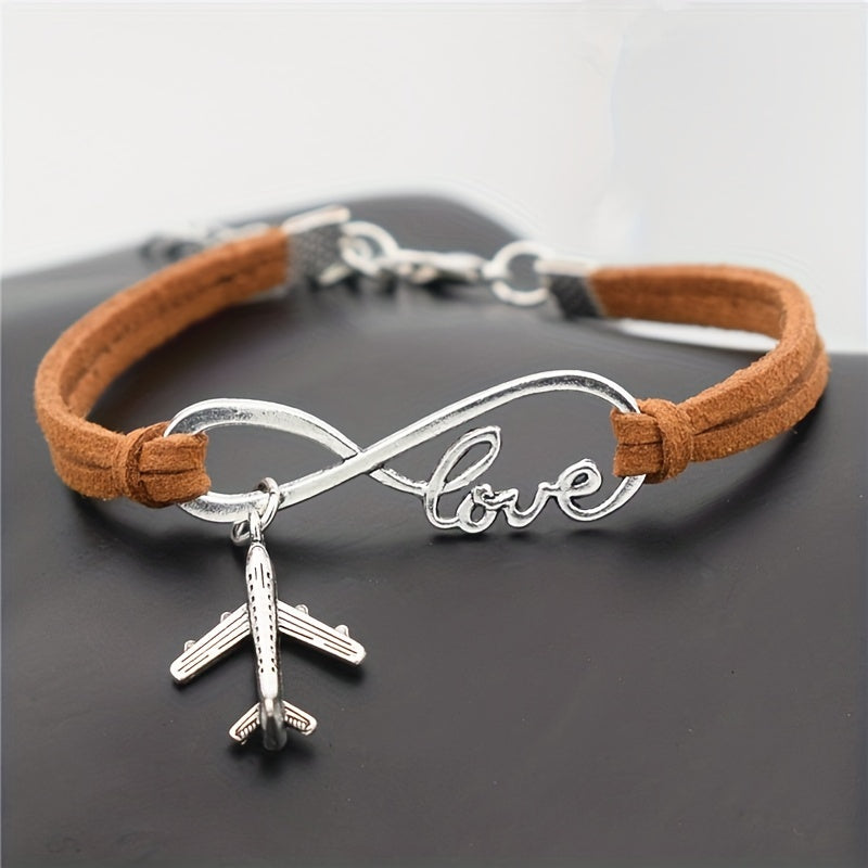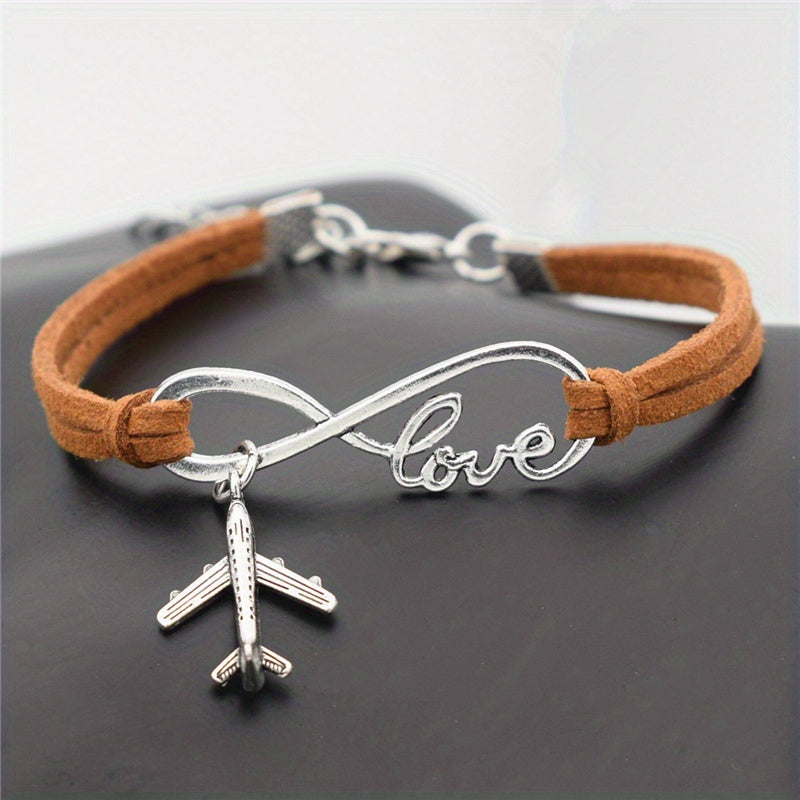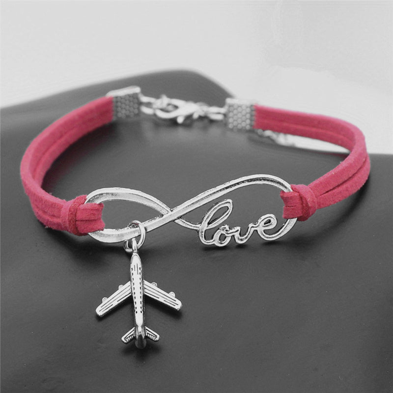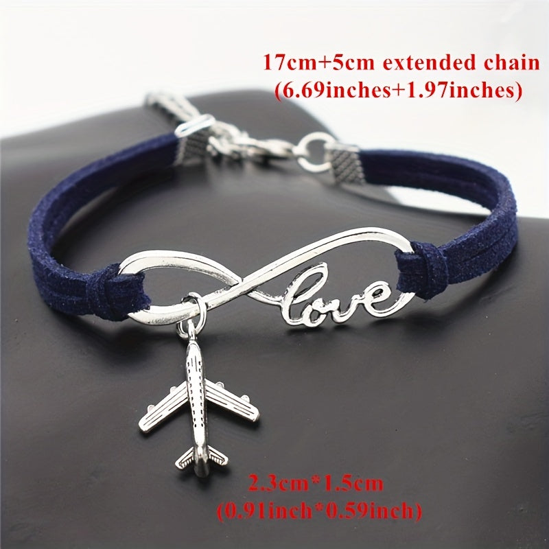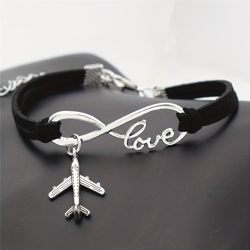 This silvery infinity love aircraft plane pendant bracelet is a delicate and stylish gift for women and girls to wear on daily casual occasions.