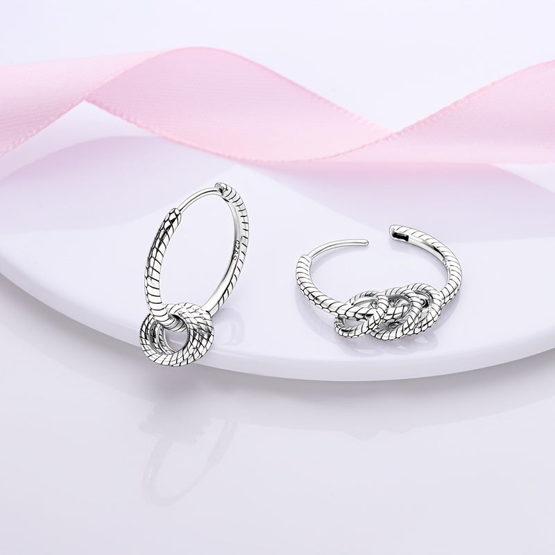 Snake Bone Pattern Two Ring Earrings 925 Silver Plated Jewelry