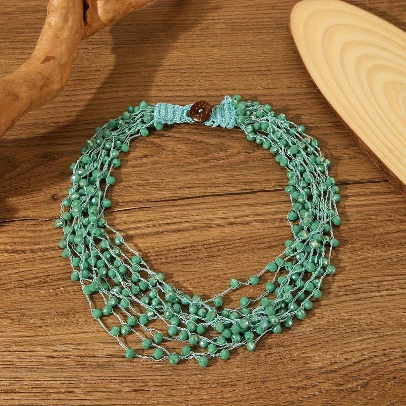 Elevate your vacation style with this versatile boho handcrafted necklace featuring unique beads and accents.