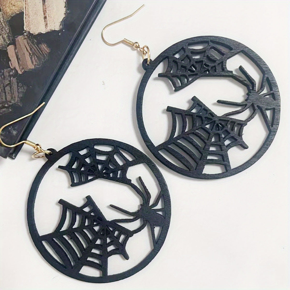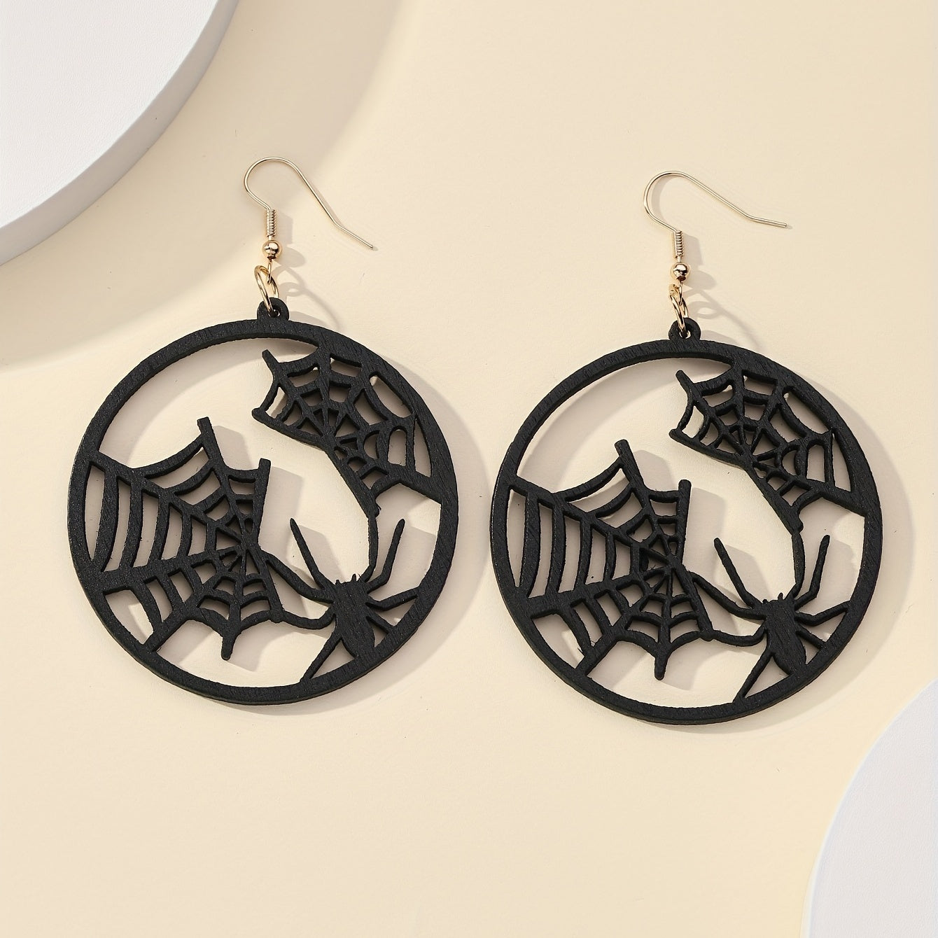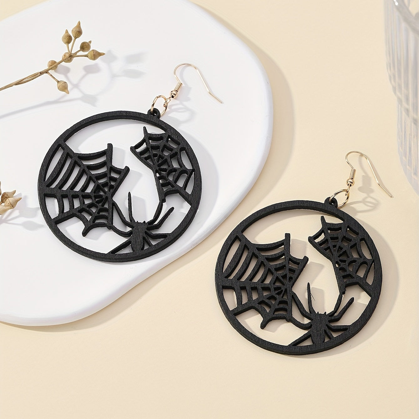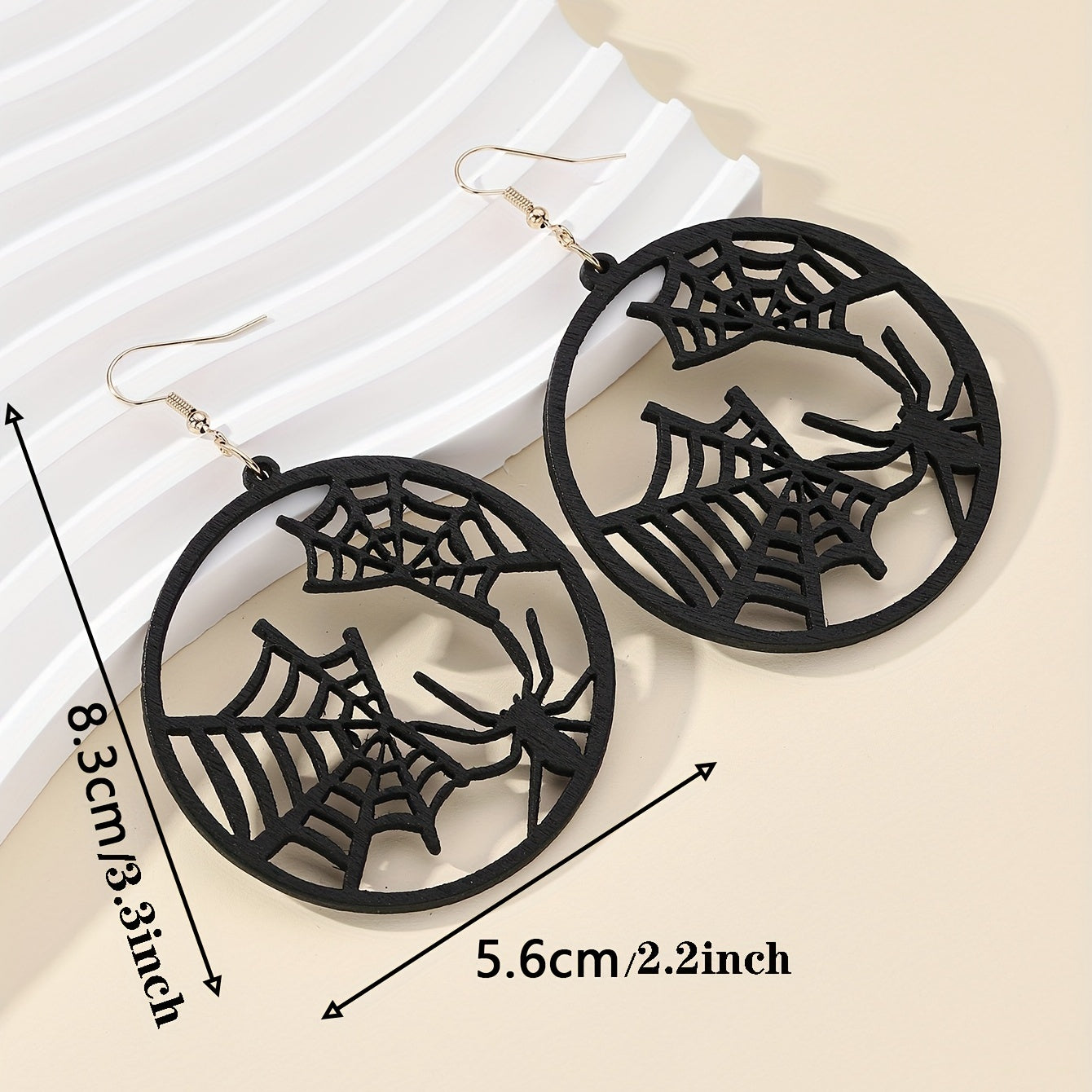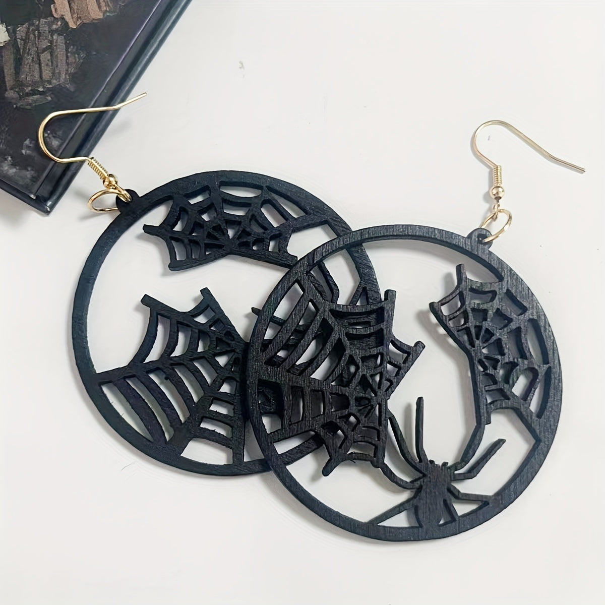 Spider & Spider Web Dangle Earrings Goth Party Style Wooden Jewelry