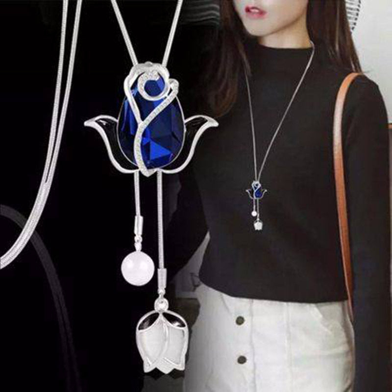 Add a touch of elegance to your outfit with this beautiful long tassel sweater chain featuring a rose flower pendant. Perfect for dresses and other fashionable ensembles.