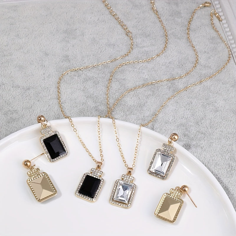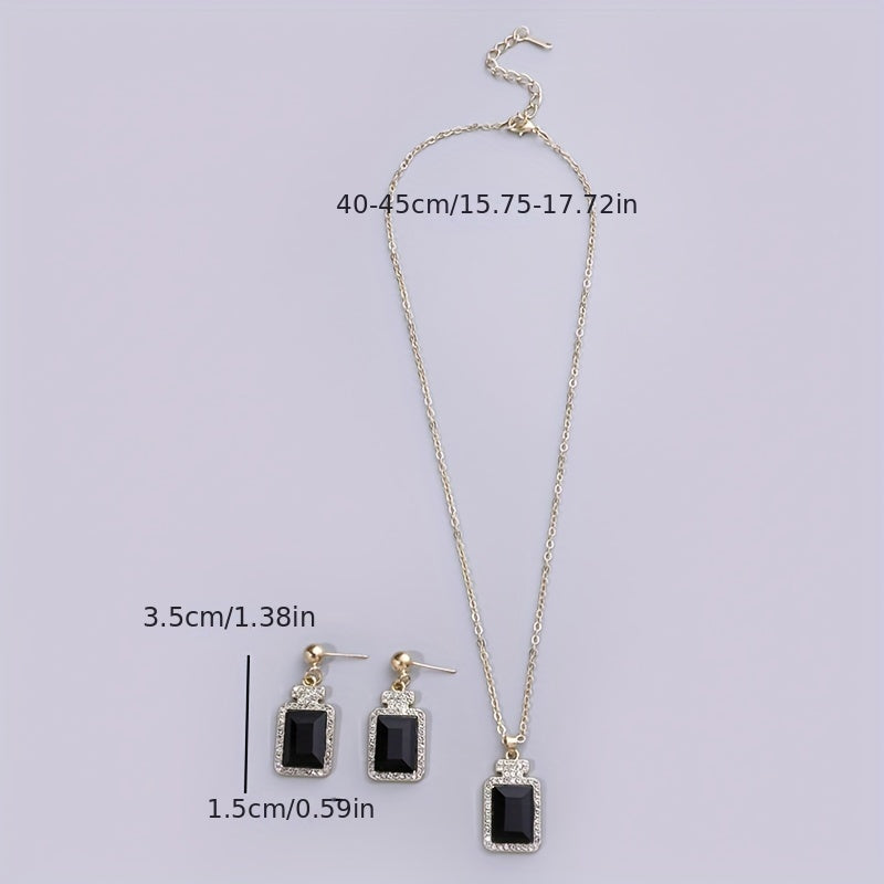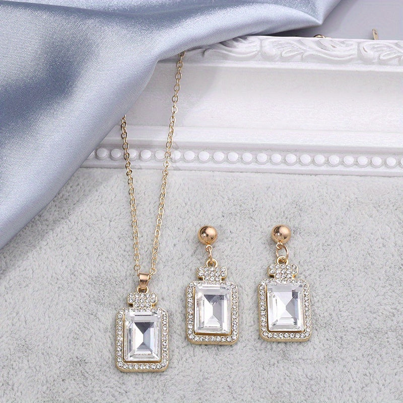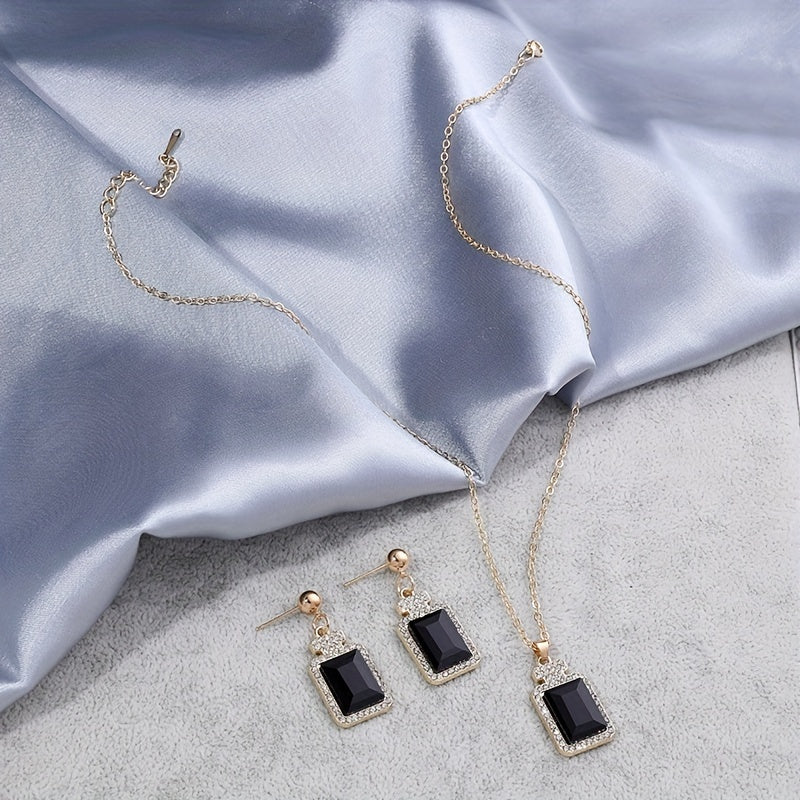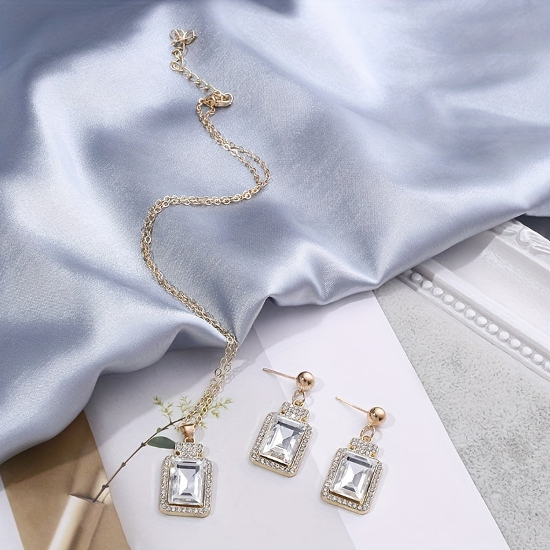 Square Rhinestone Earrings & Necklace Set Elegant Party Jewelry
