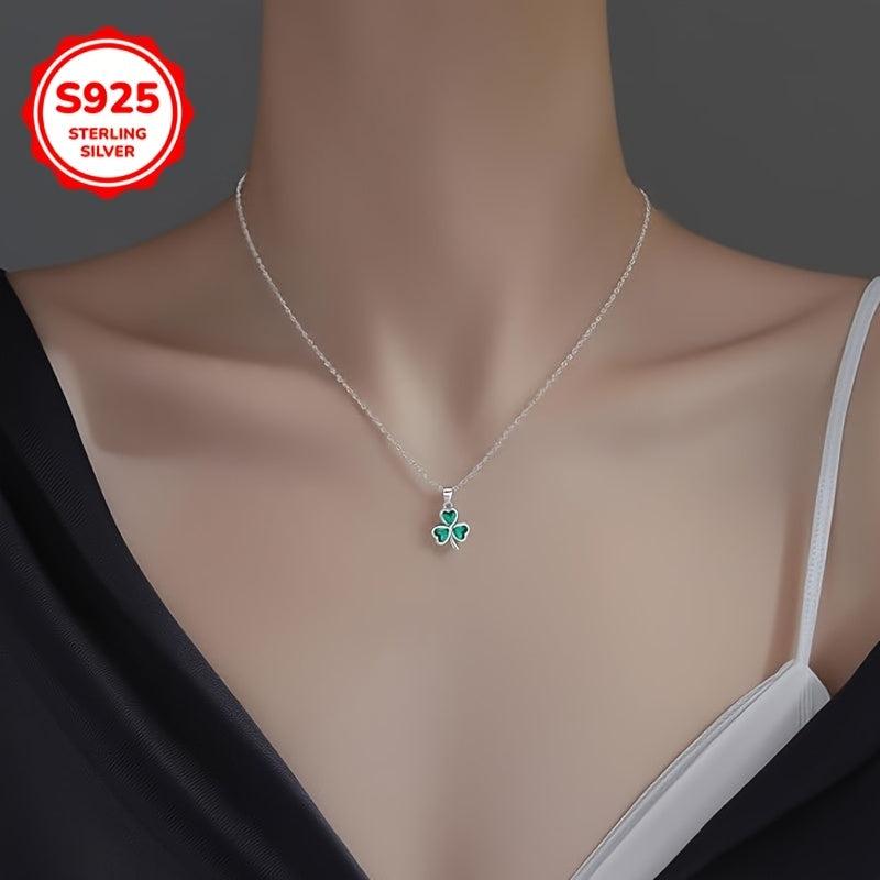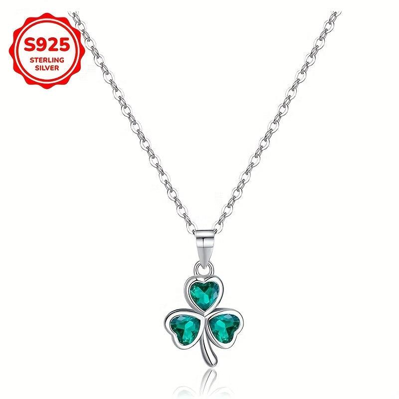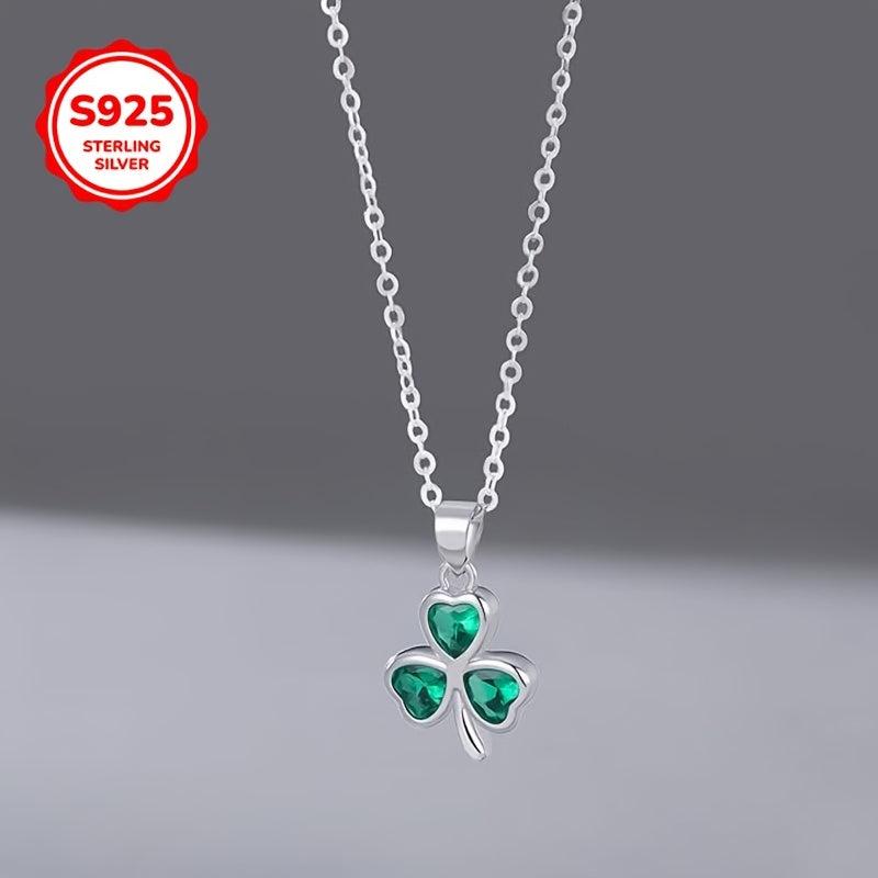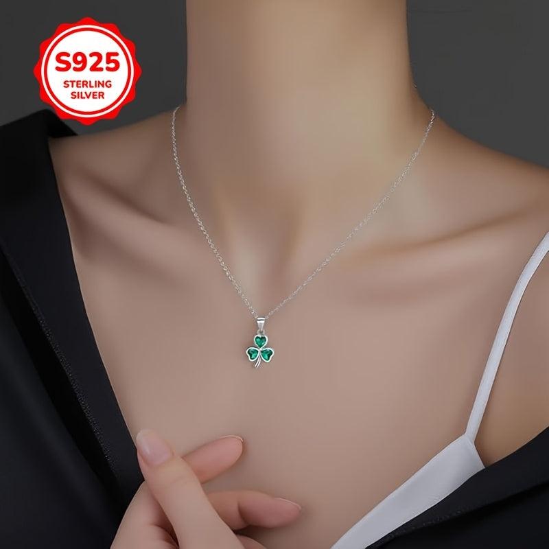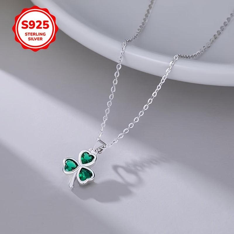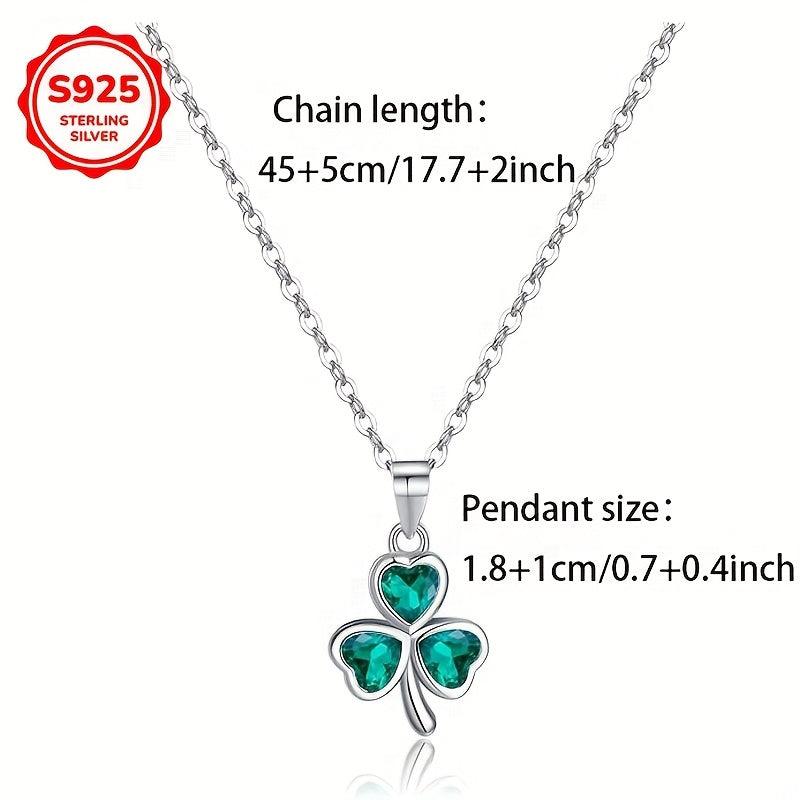 Hypoallergenic S925 silver necklace featuring a clover pendant with a green synthetic heart zirconia. Perfect gift for women for everyday wear.
