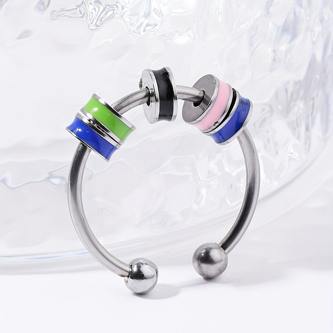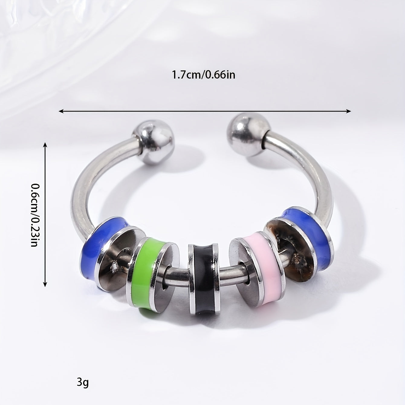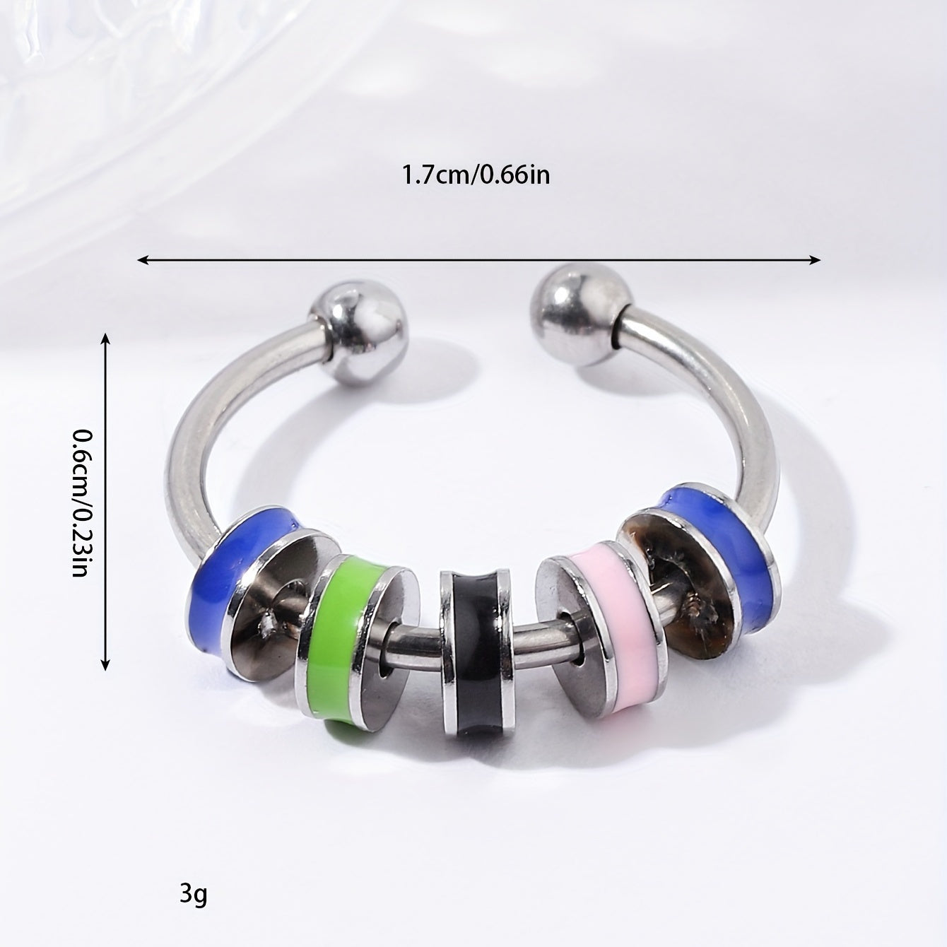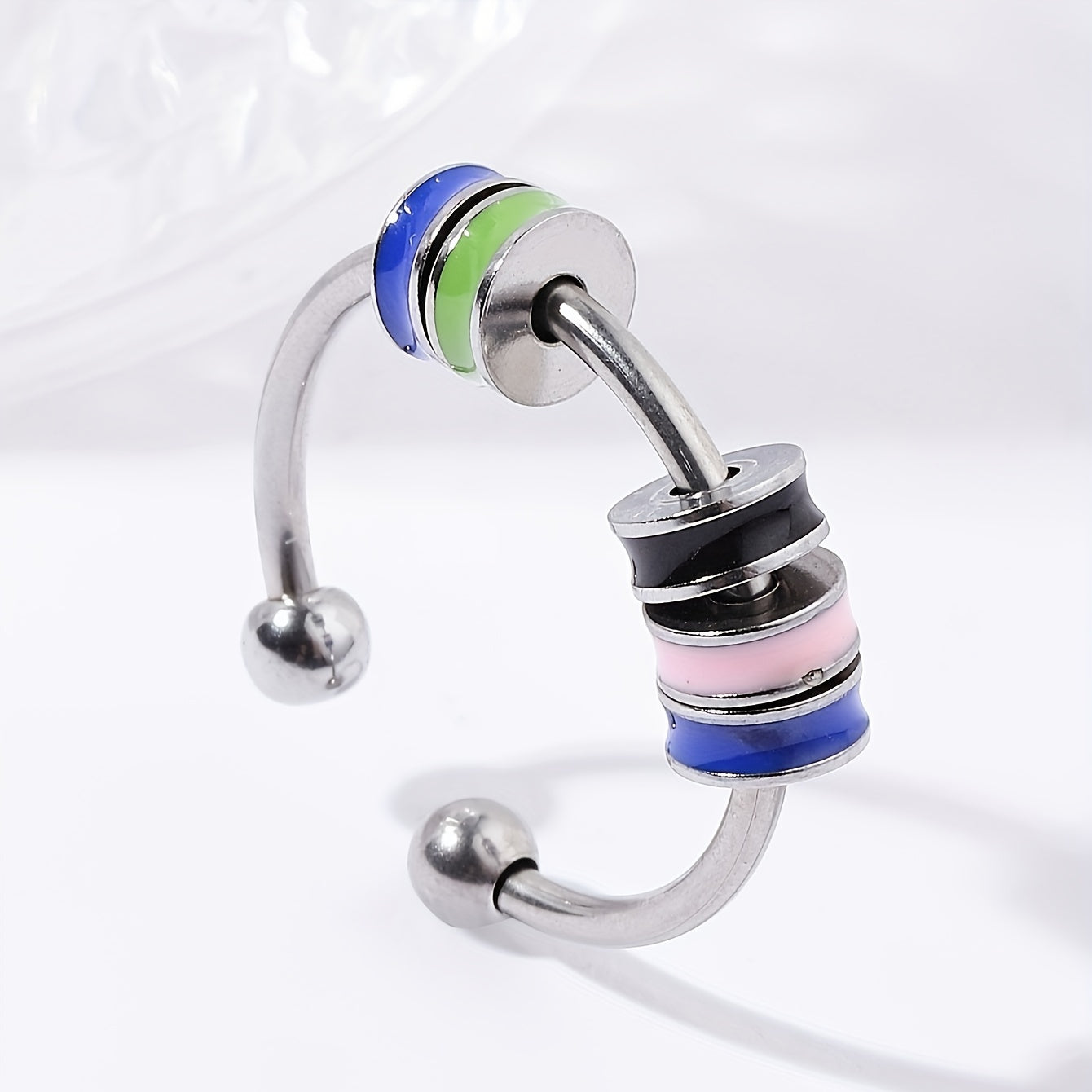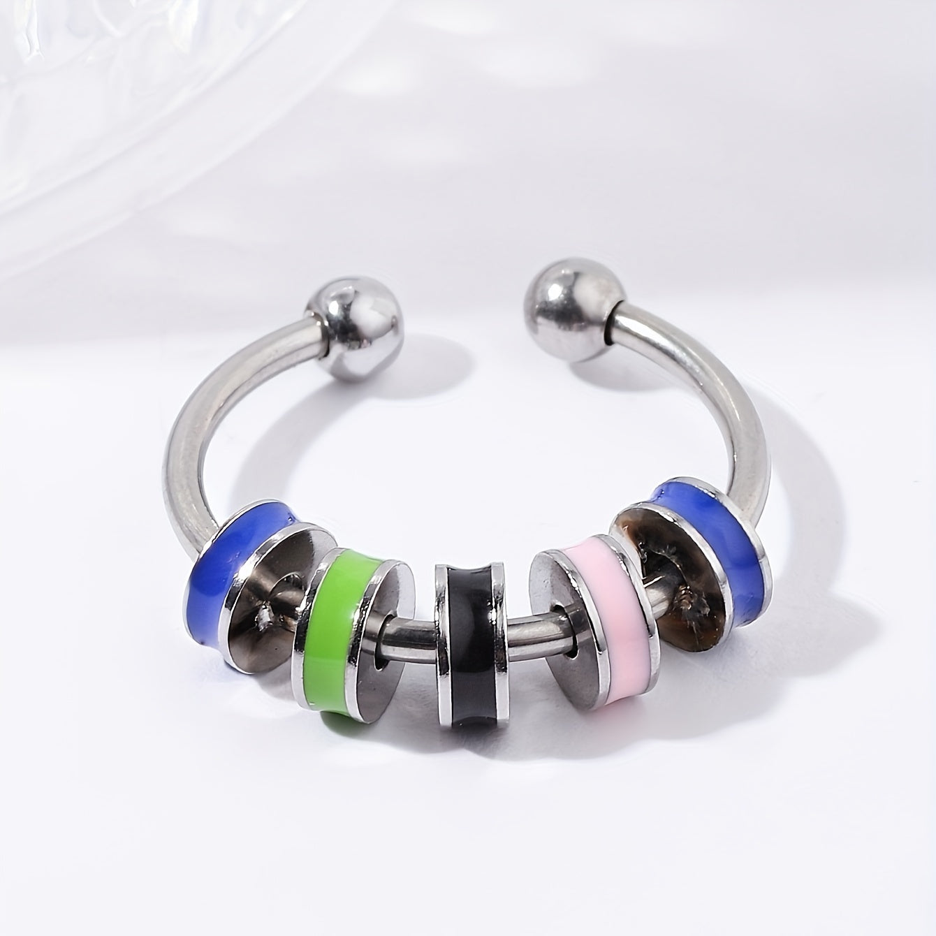 Stainless Steel Anxiety Ring Spinning Beads Cuff Adjustable Colorful Gift