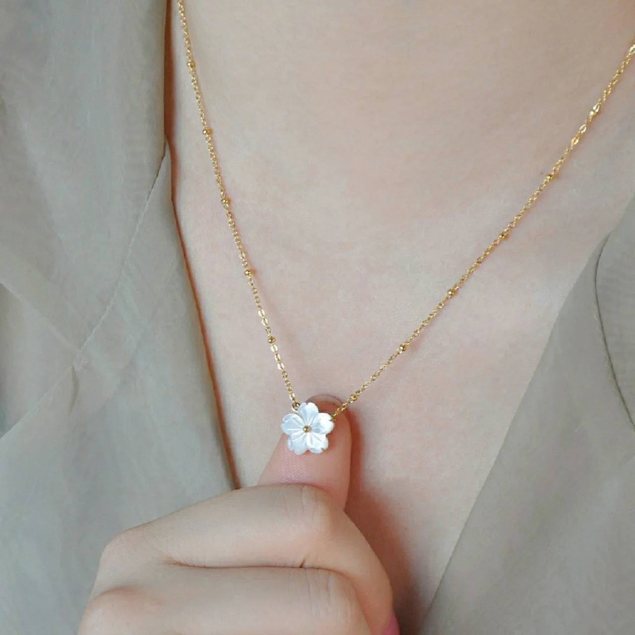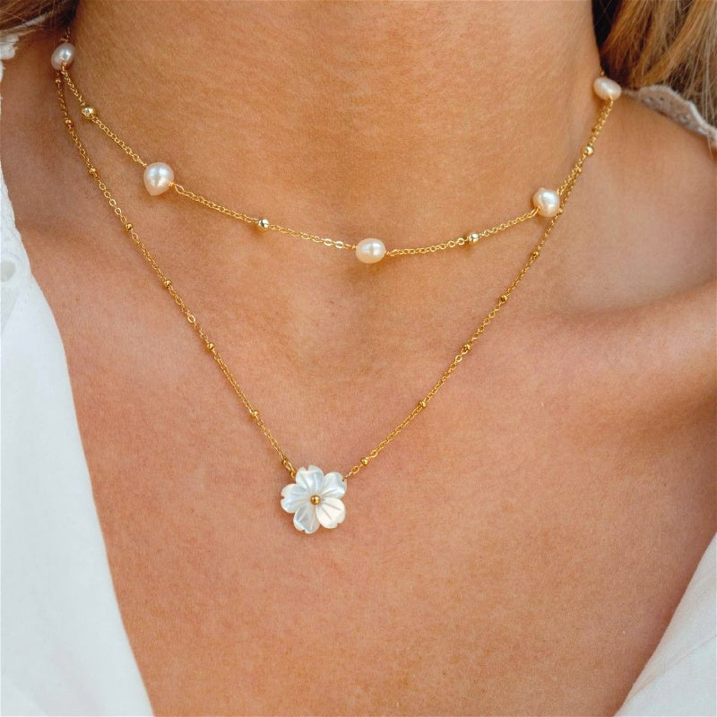 Stainless Steel Floral Necklace Golden Tone Chain French Inspired Jewelry