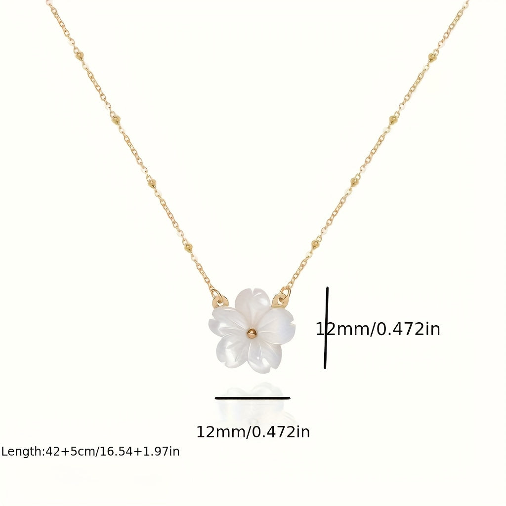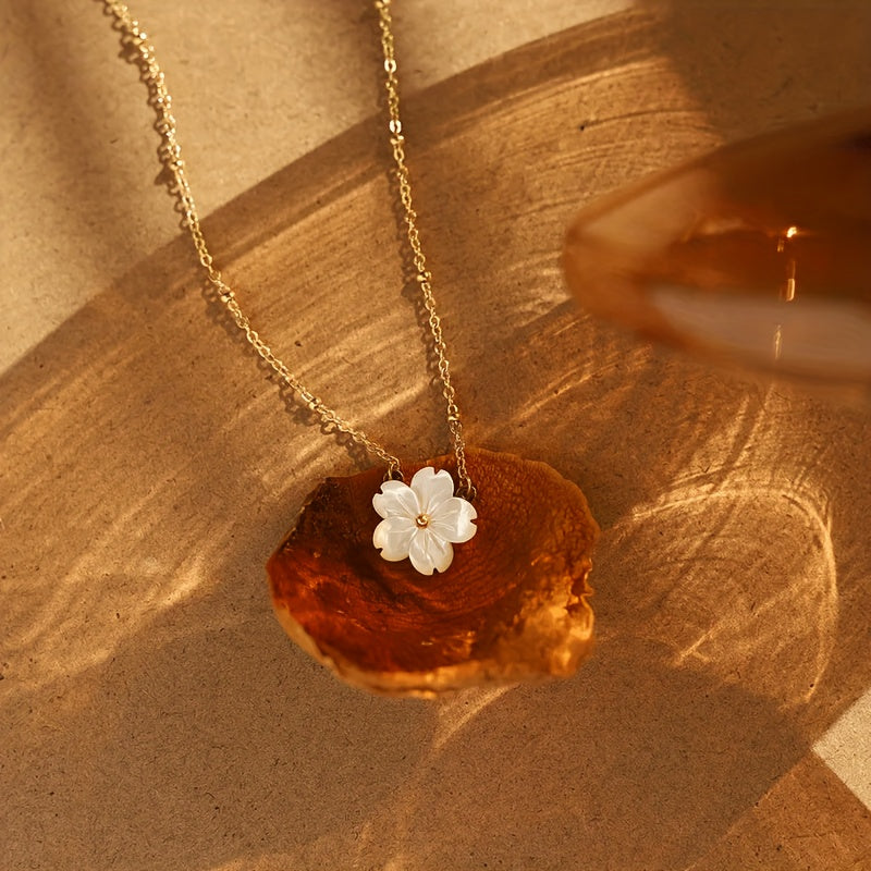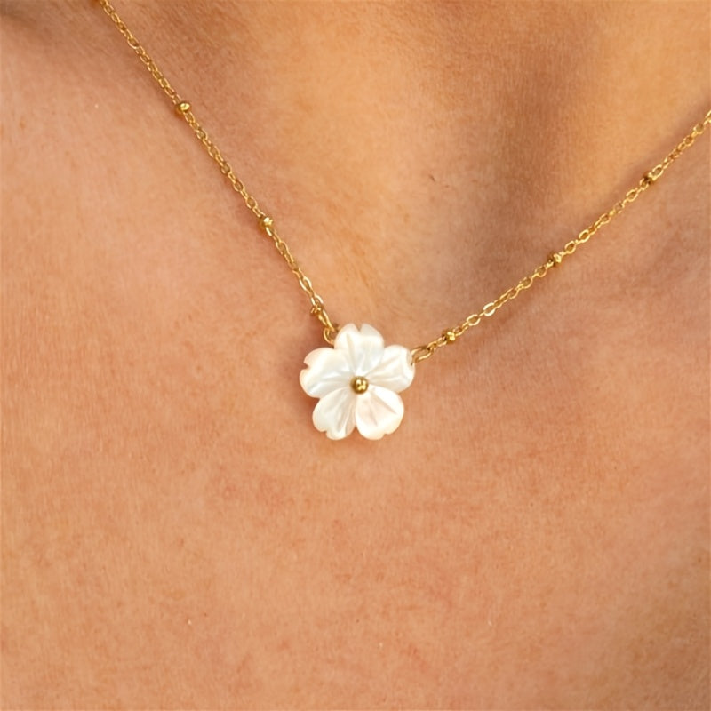 Add a touch of elegance to your outfit with this stainless steel floral necklace featuring a golden tone chain. Inspired by French design, this piece is perfect for both casual and formal wear.