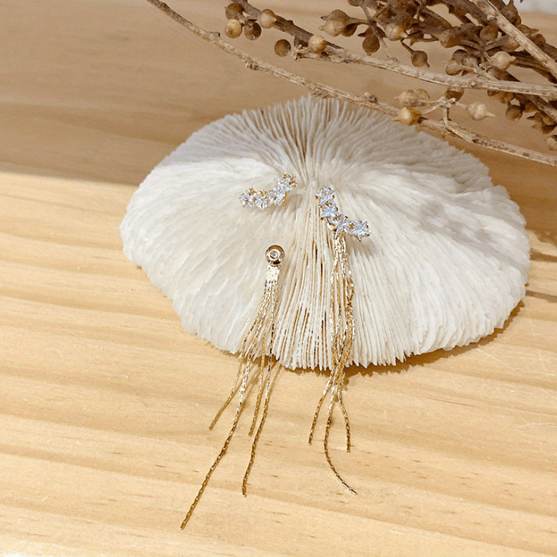 Get ready to shine bright with these elegant Star Tassel Chain Long Earrings. Perfect for parties and special occasions. Make heads turn with these stunning earrings.