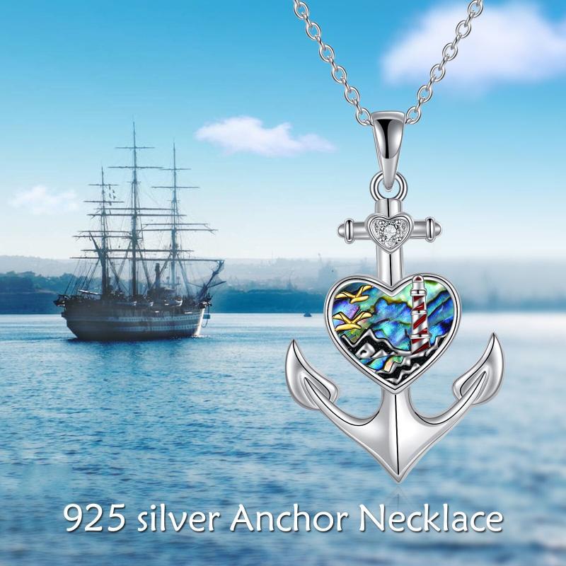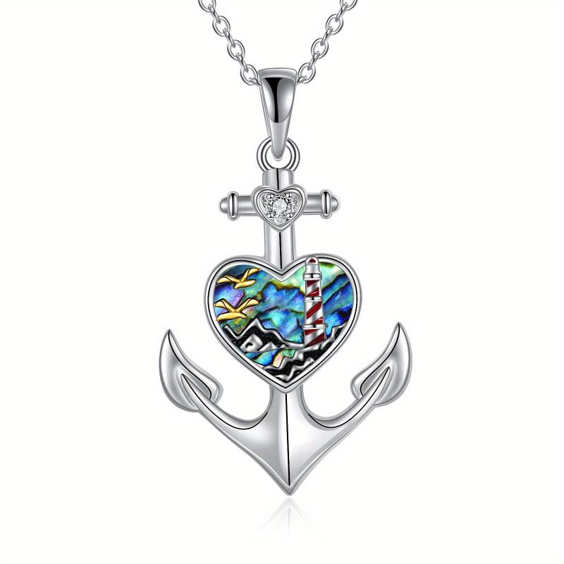 This stunning anchor necklace is crafted from high-quality sterling silver, featuring intricate details of a mountain, anchor, and lighthouse intertwined with a rope design. Perfect for women, teens, and nautical enthusiasts who appreciate unique sailor-inspired jewelry.