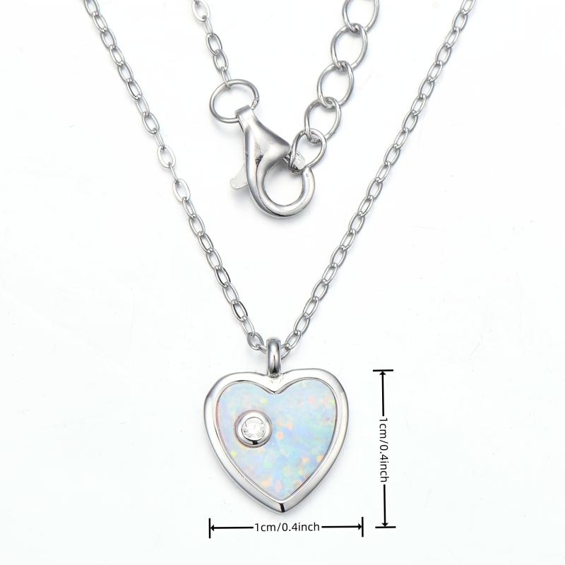 Sterling Silver Heart Pendant Necklace with Opal Adjustable Length