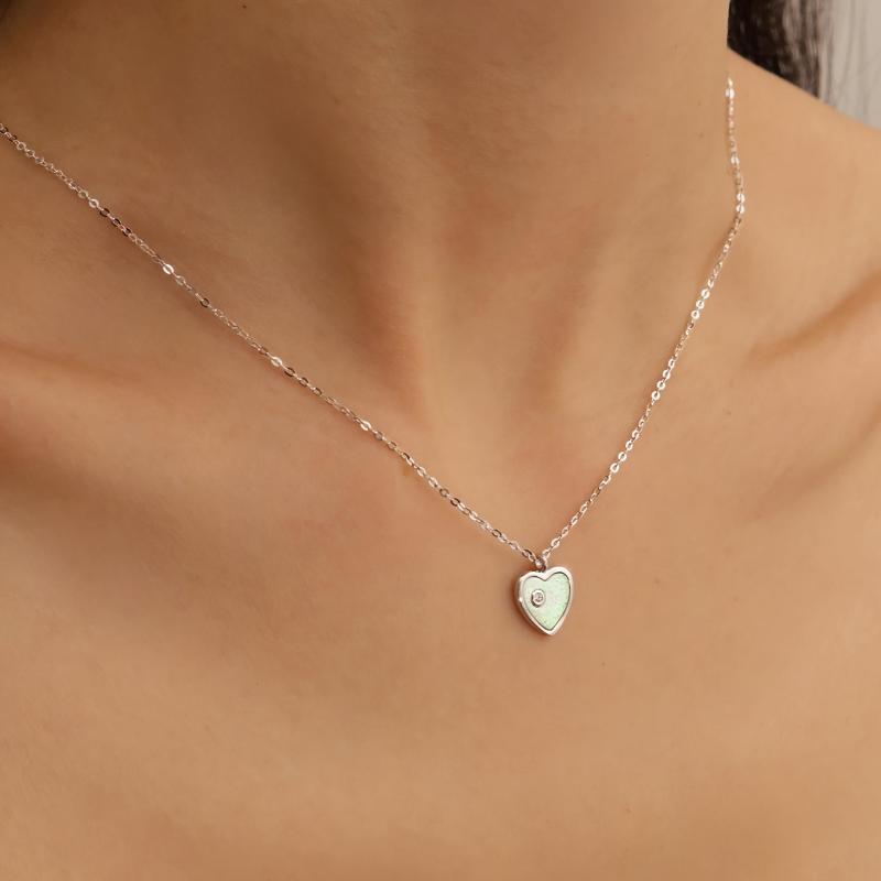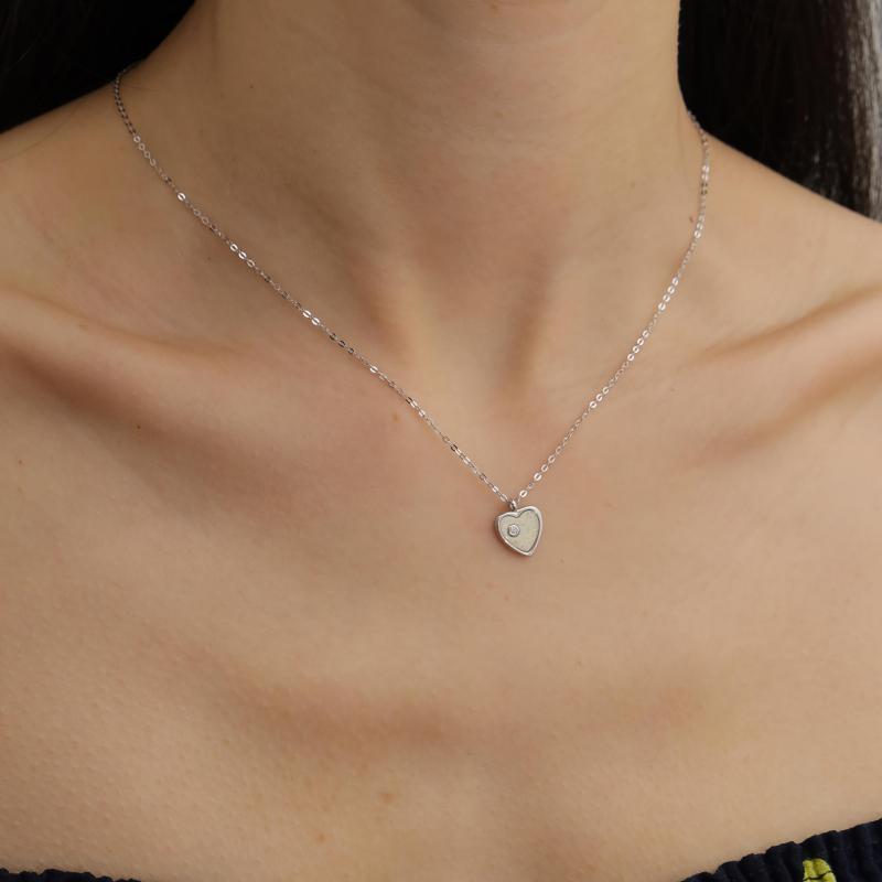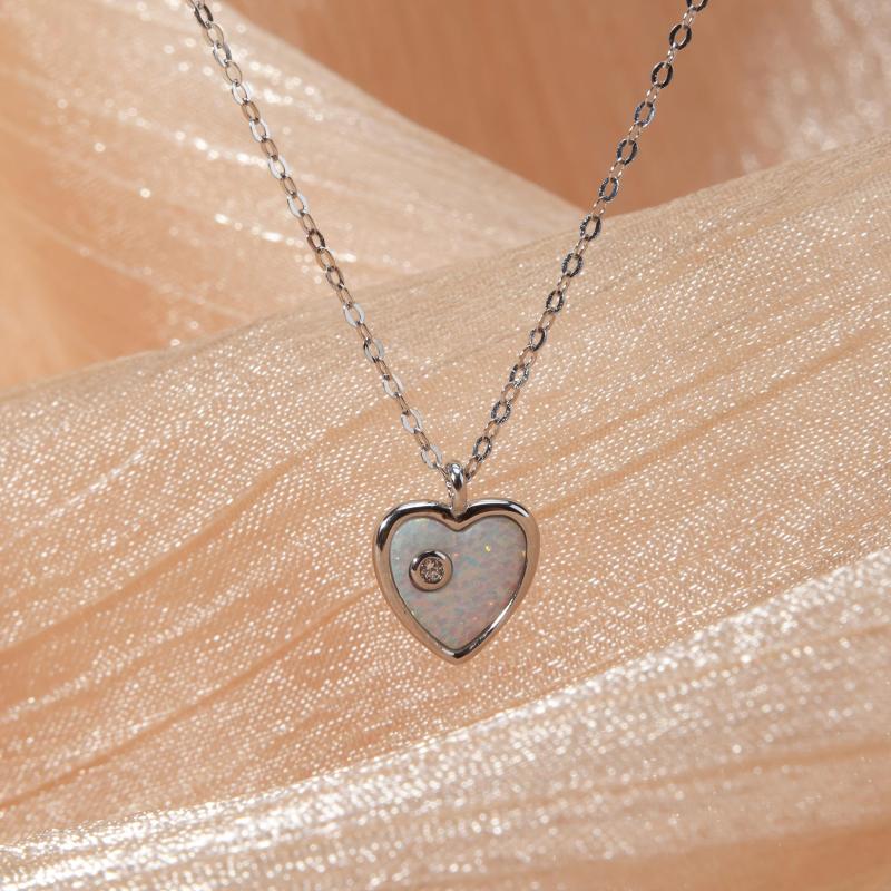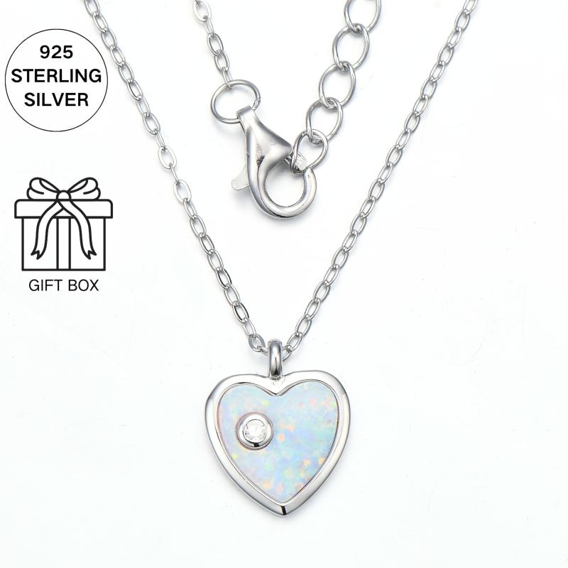 • 925 sterling silver necklace with synthetic opal heart pendant