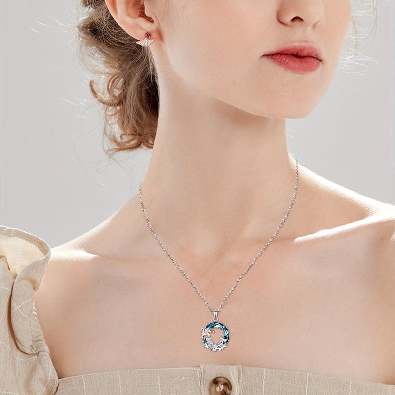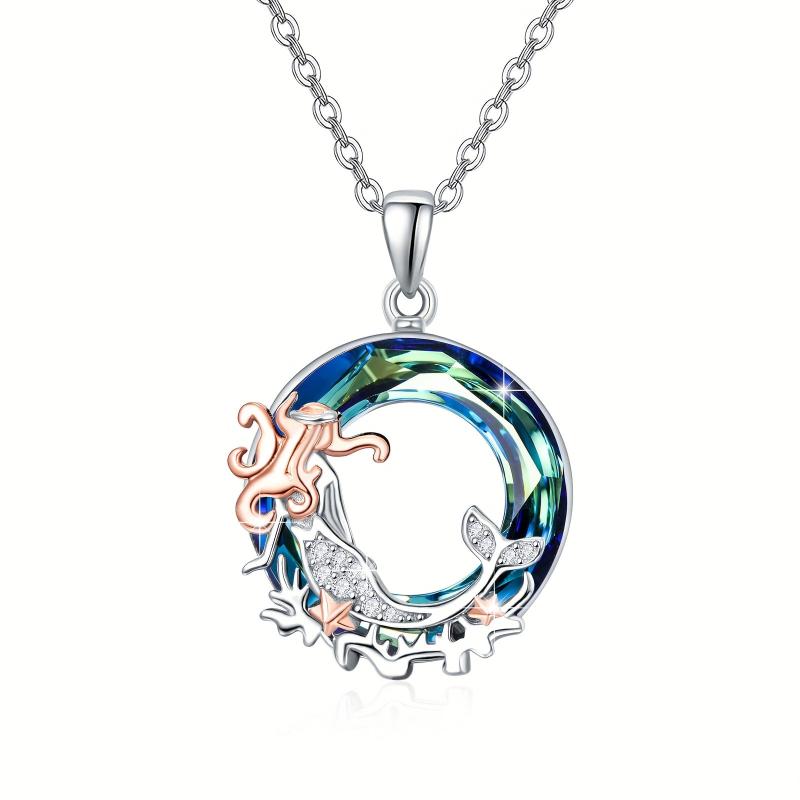 Adorn yourself with this enchanting mermaid necklace made of 925 sterling silver featuring a sparkling synthetic crystal. Perfect for ocean lovers, women, and girls.