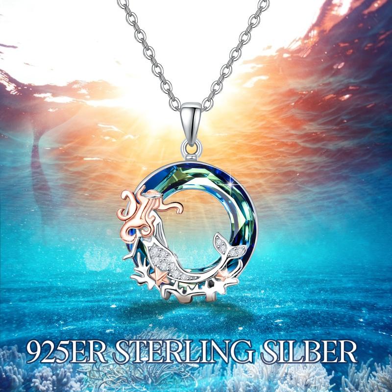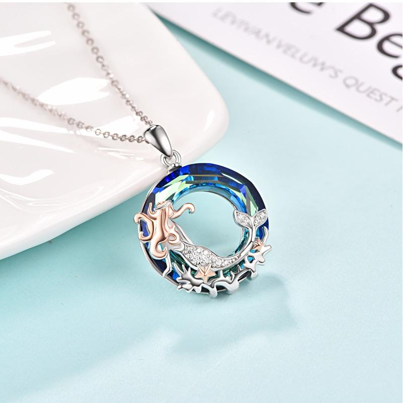 Sterling Silver Mermaid Necklace with Synthetic Crystal Pendant
